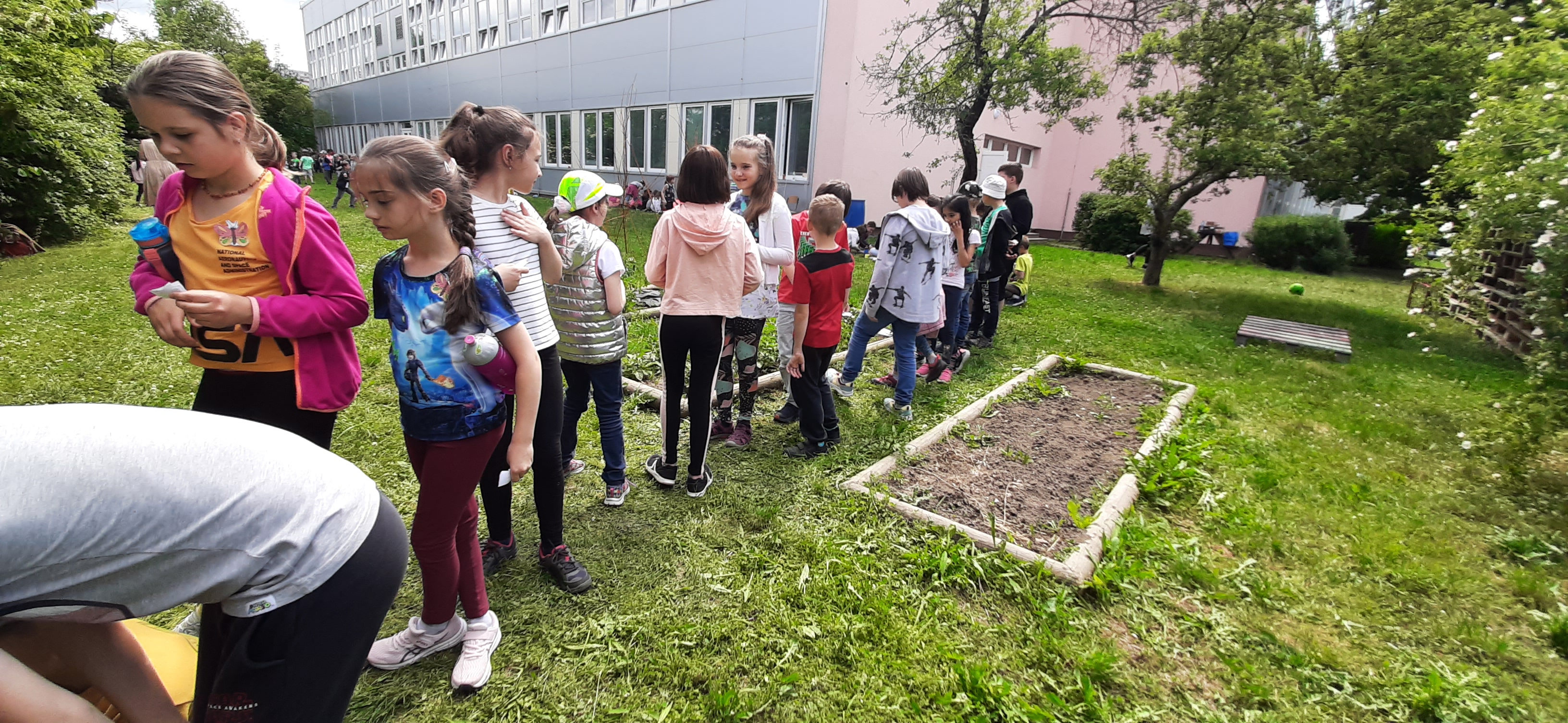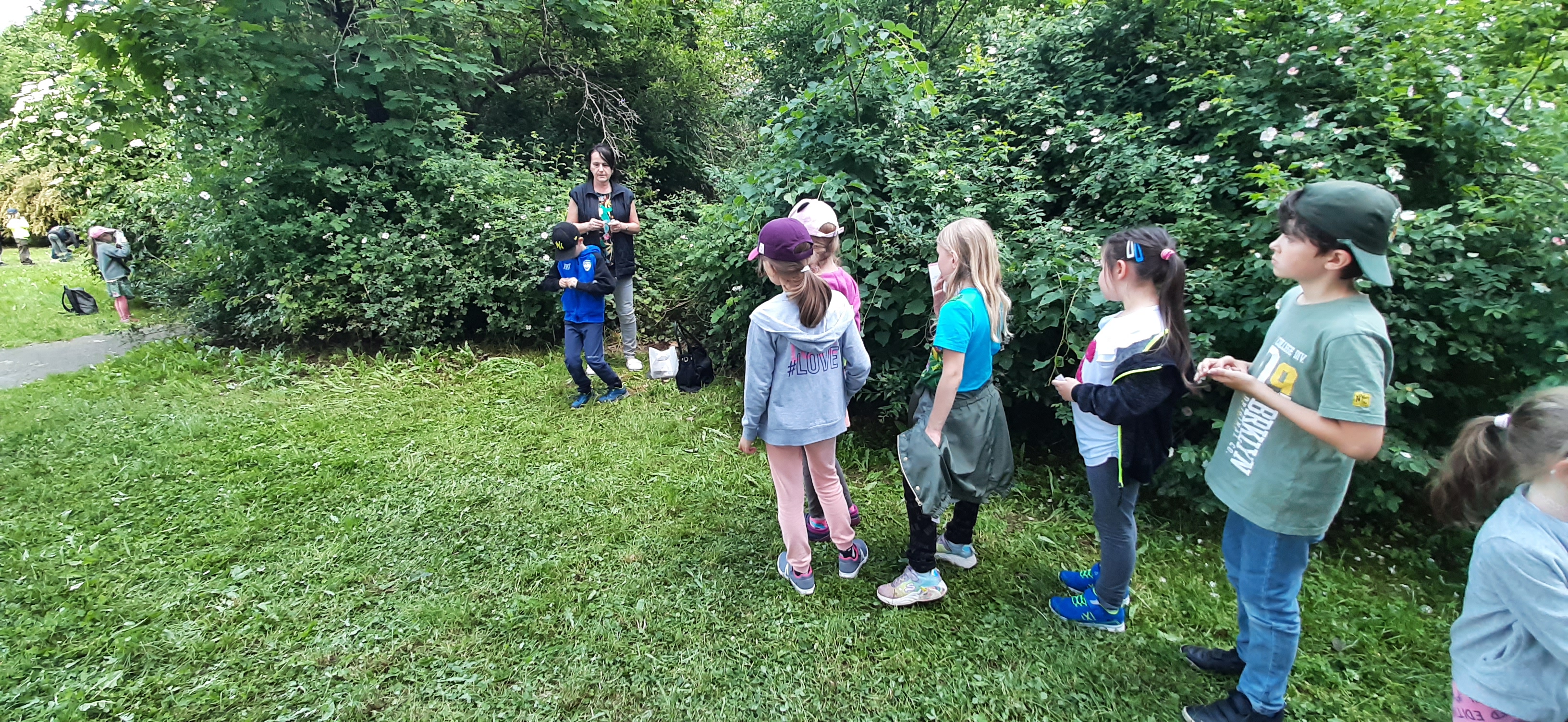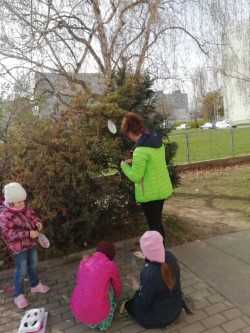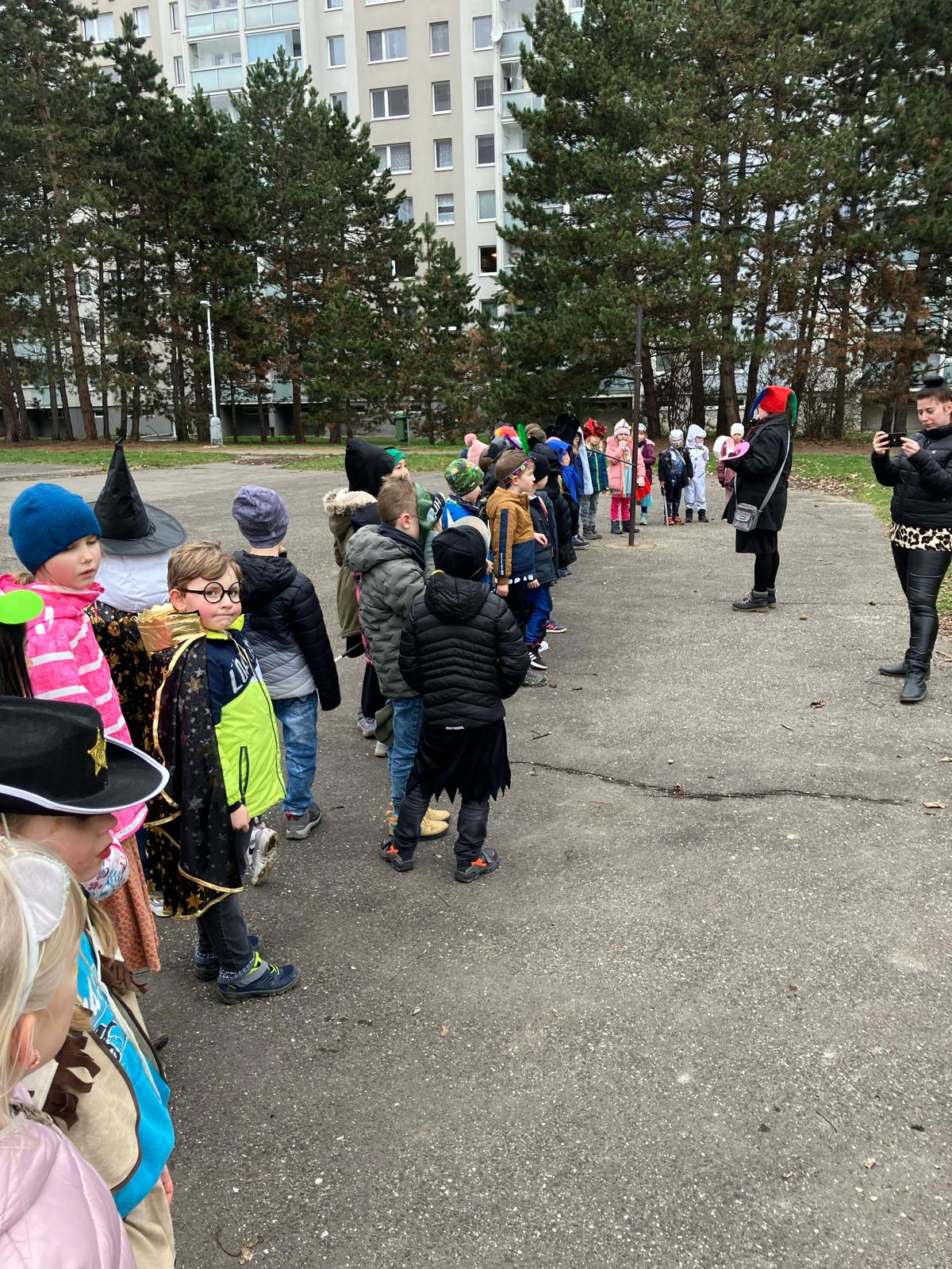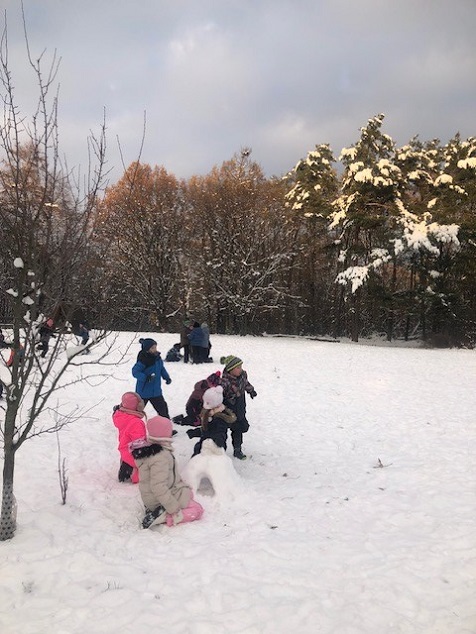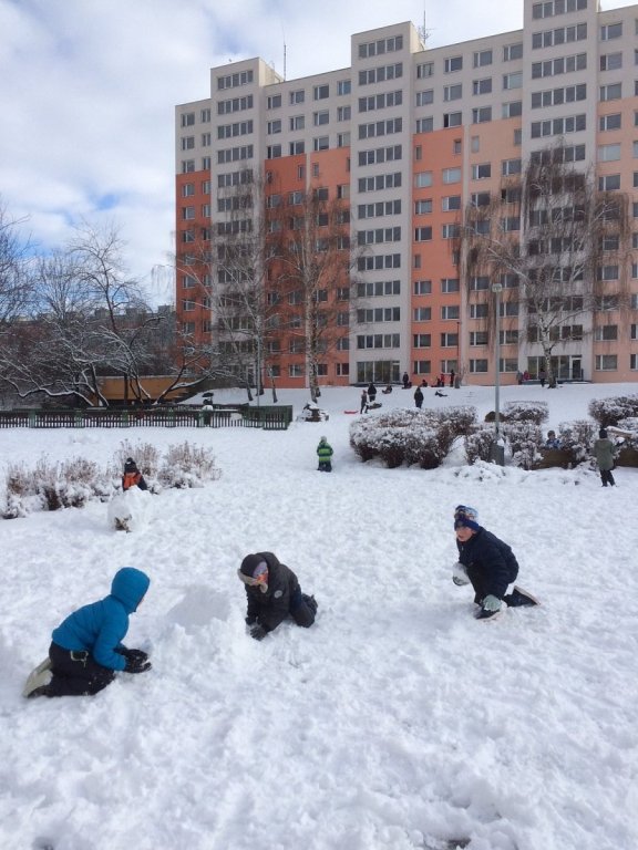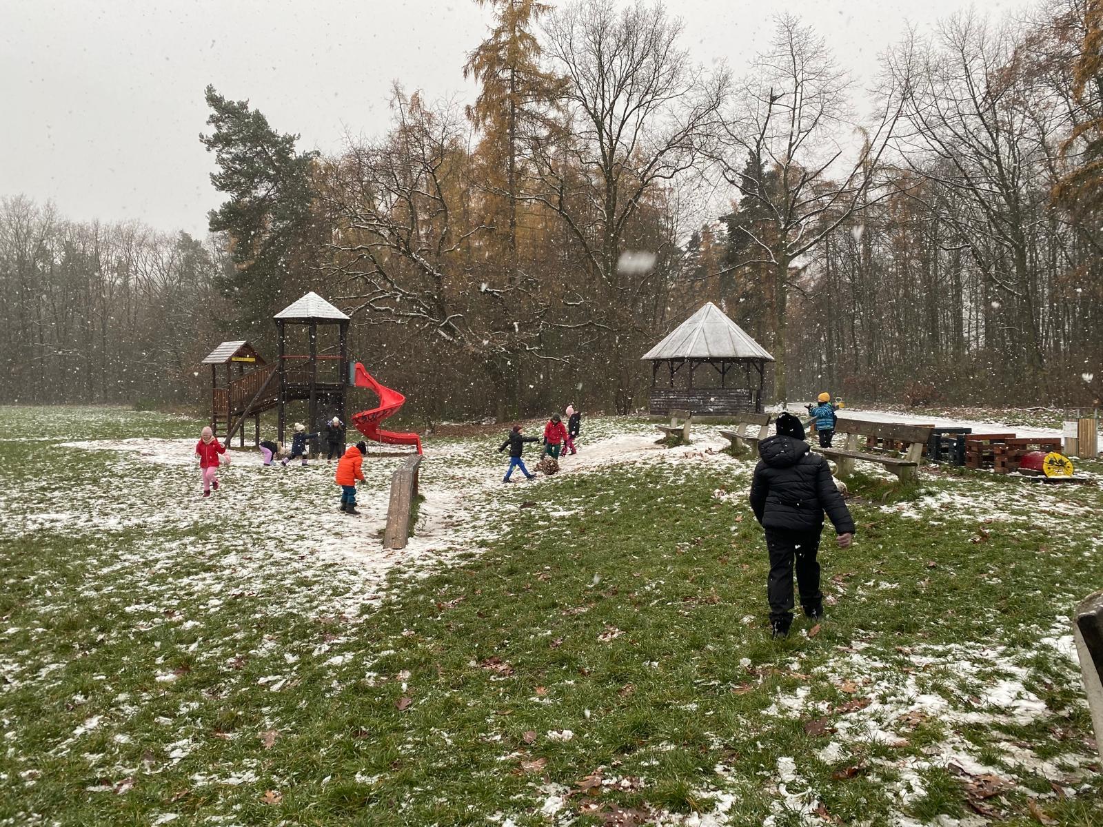Venku: vycházky po okolí, pobyt na veřejném dětském hřišti, pobyt na školní zahradě – péče o květiny, individuální činnosti dle potřeb každého dítěte. Vycházky do lesoparku – pozorování přírody.
