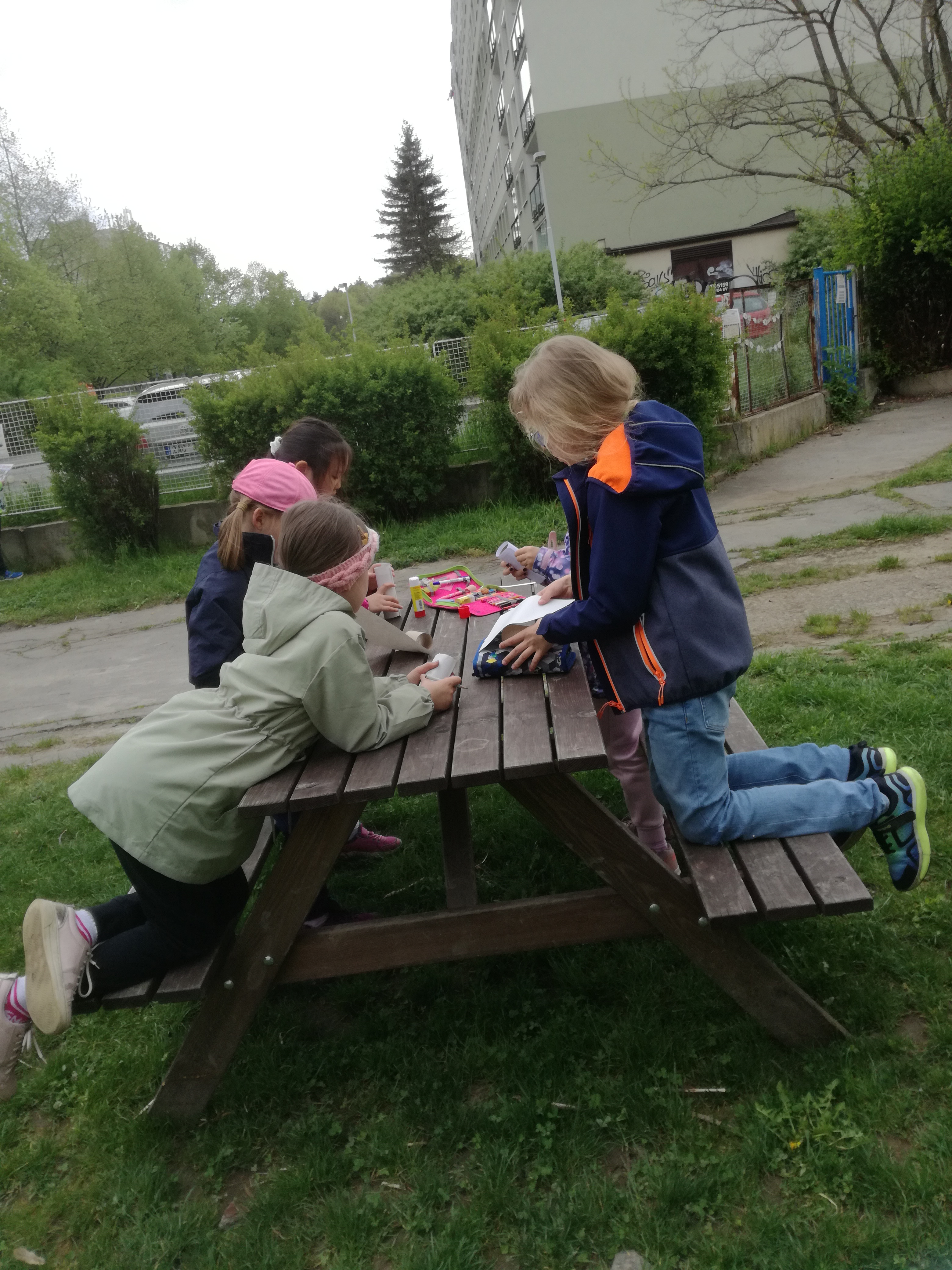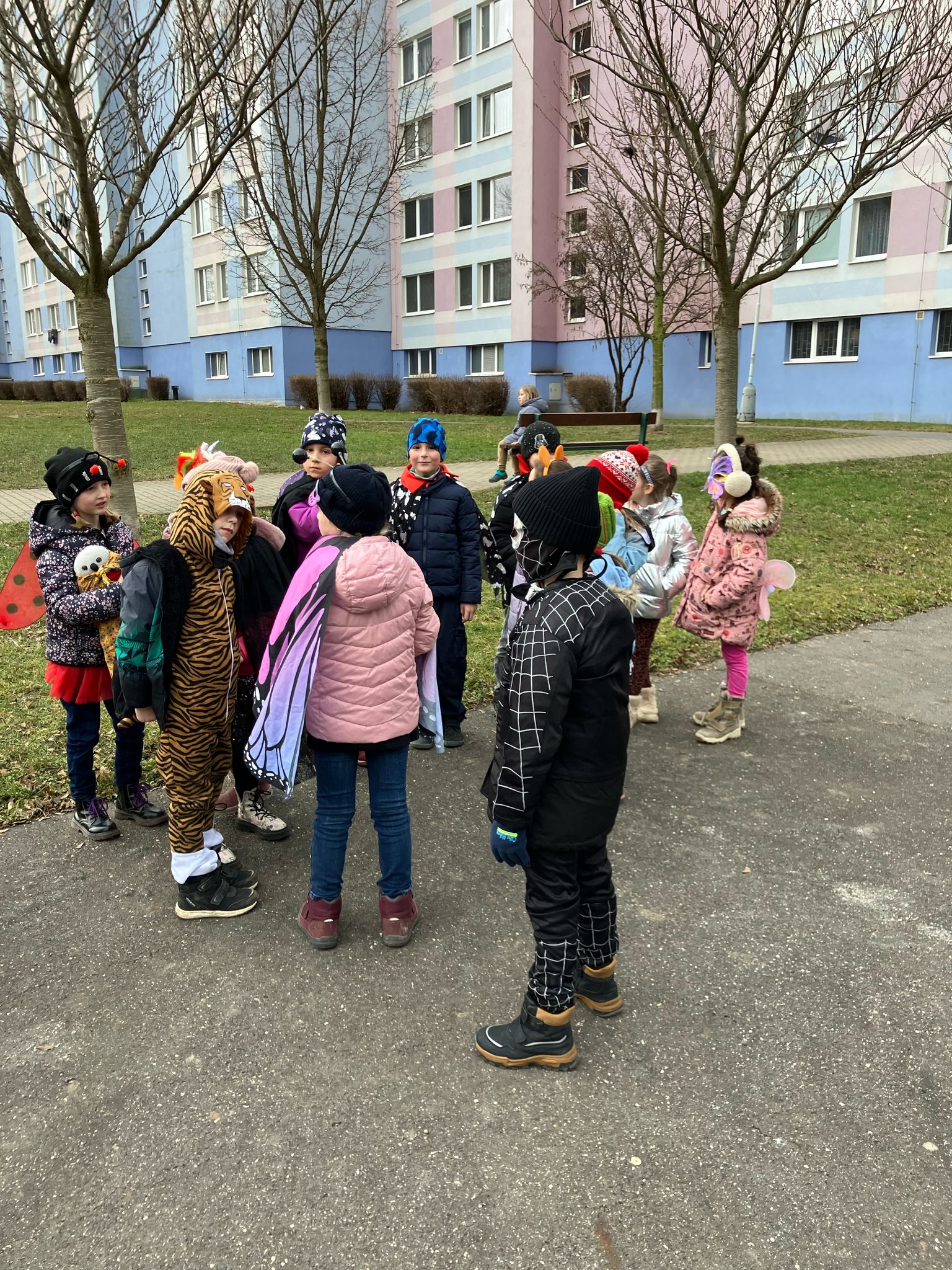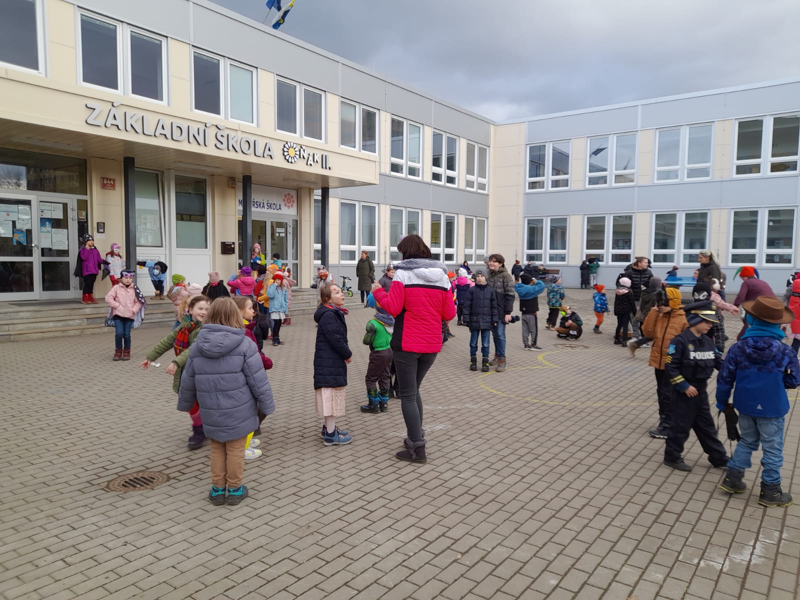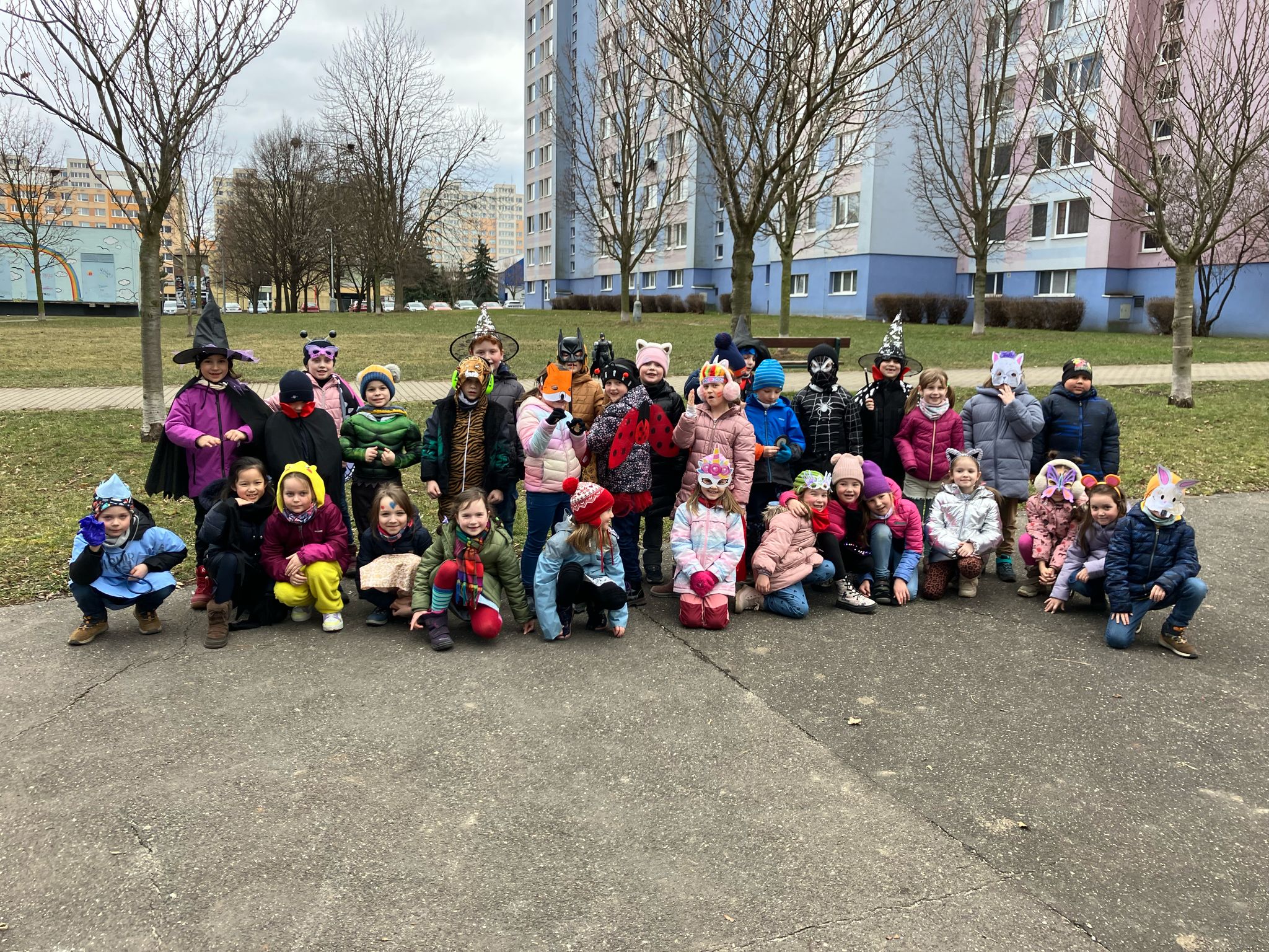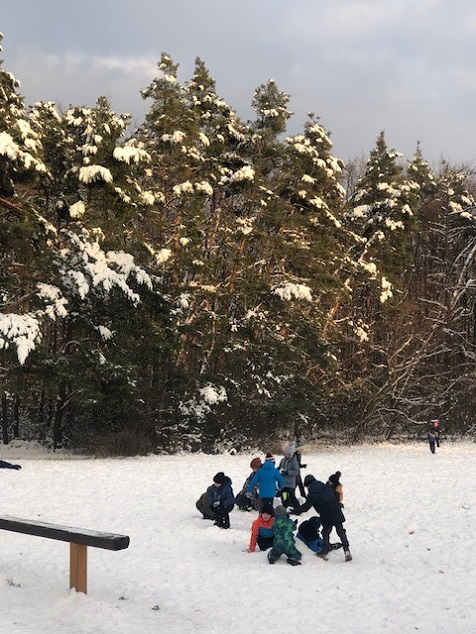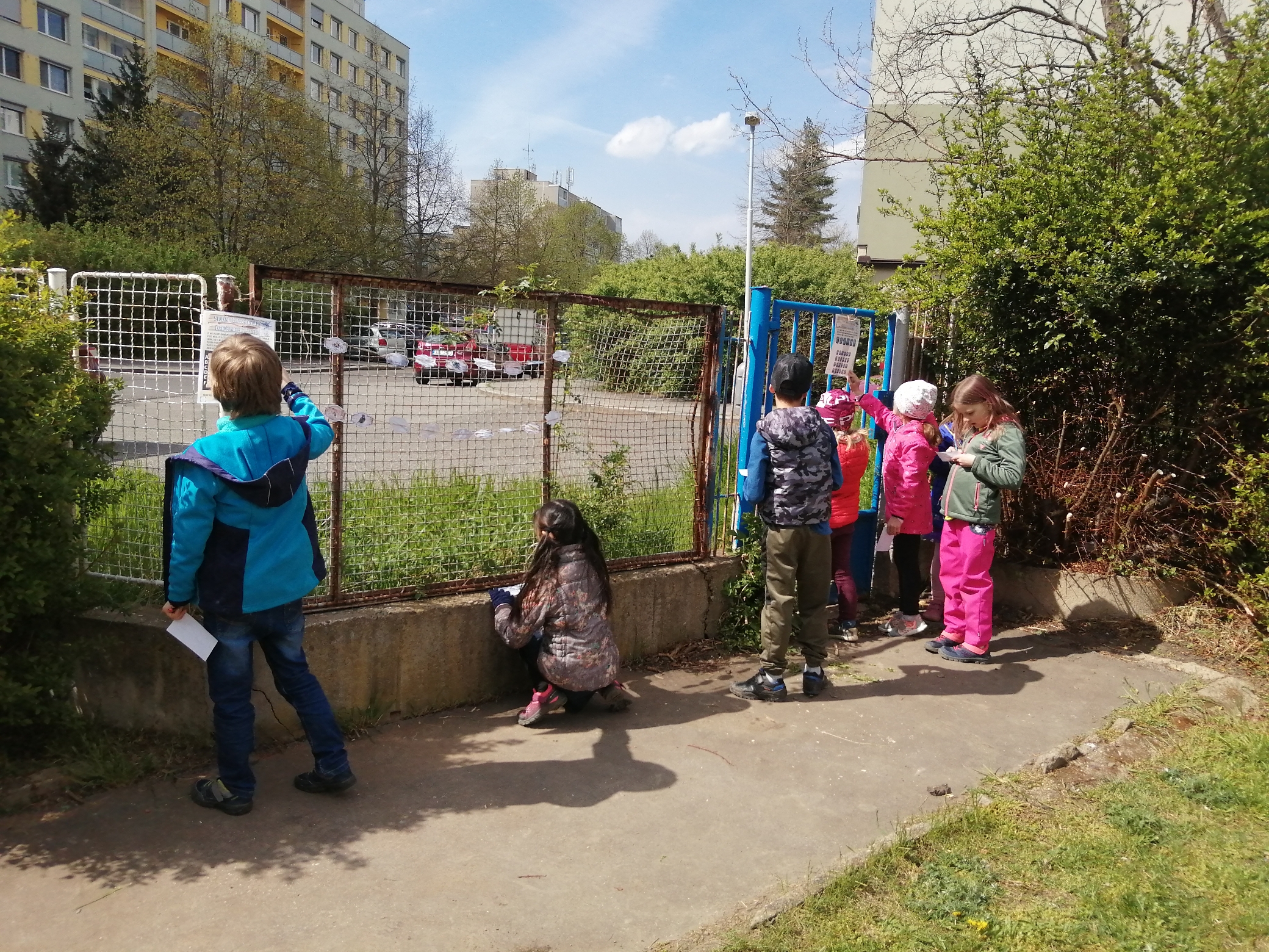Venku: vycházky po okolí, pobyt na veřejném dětském hřišti, pobyt na školní zahradě – péče o květiny, individuální činnosti dle potřeb každého dítěte. Vycházky do lesoparku – pozorování přírody.