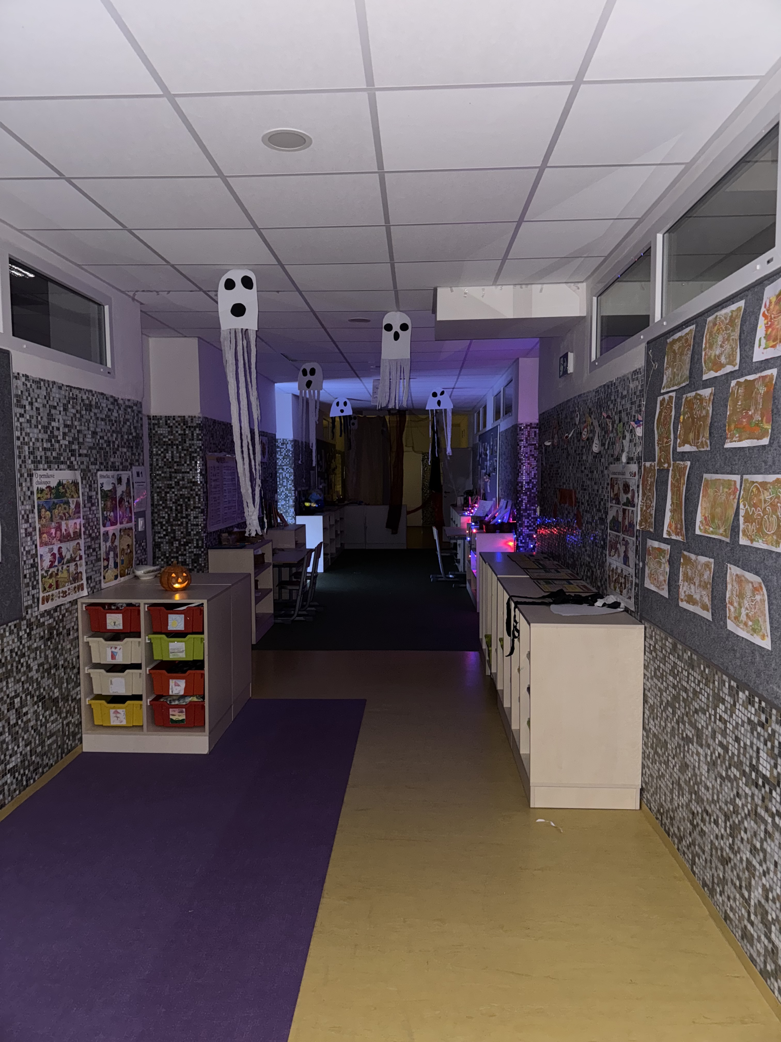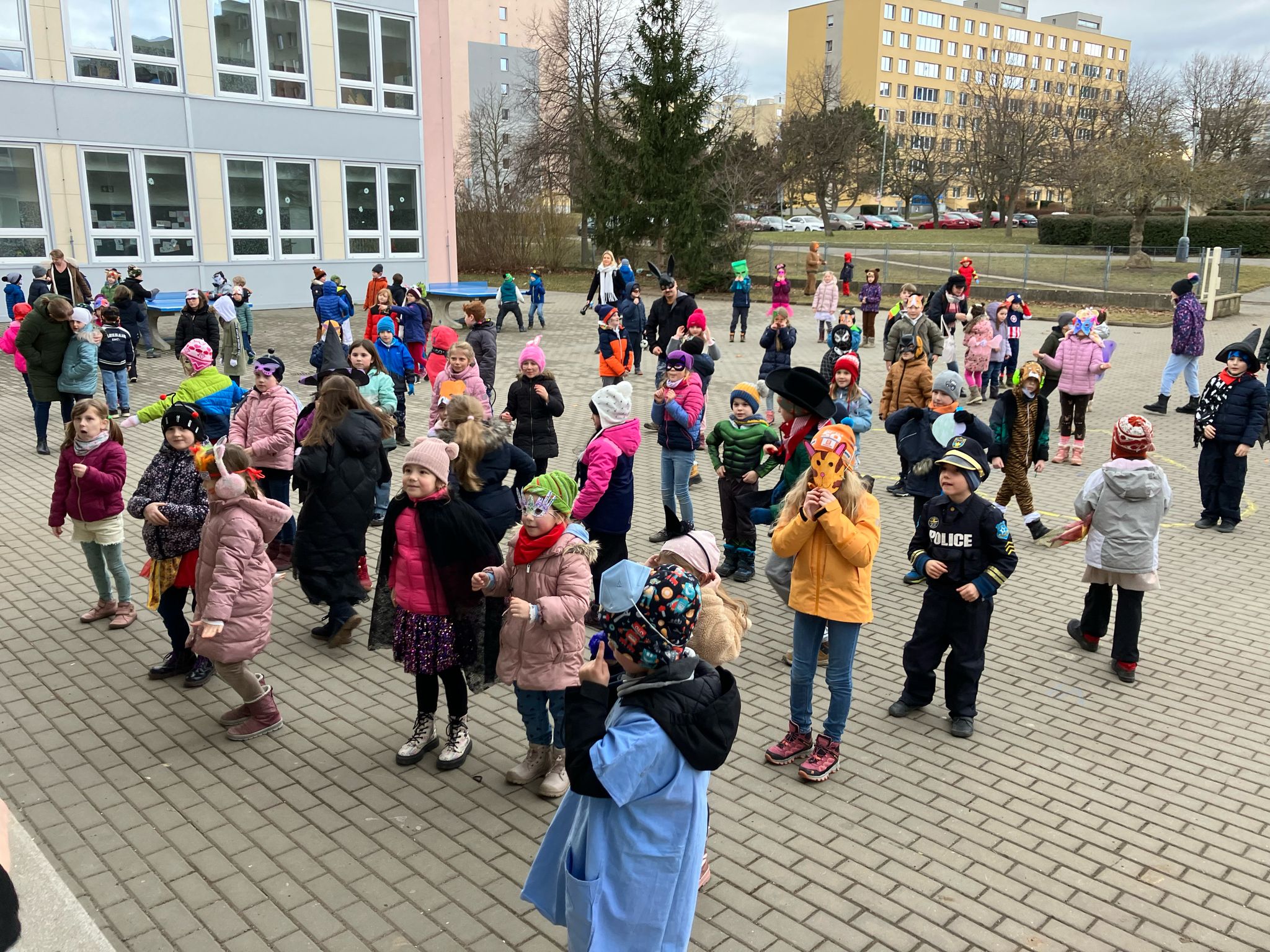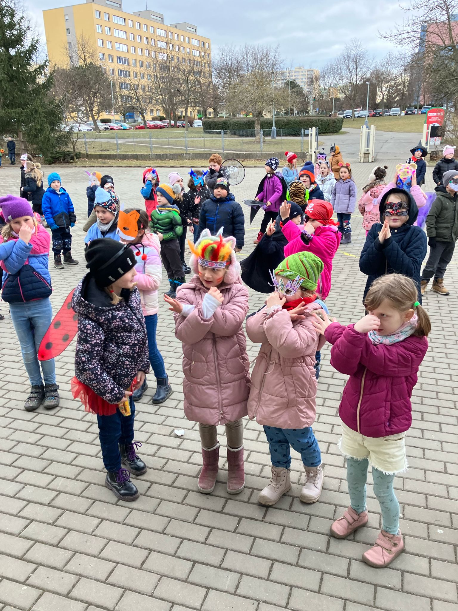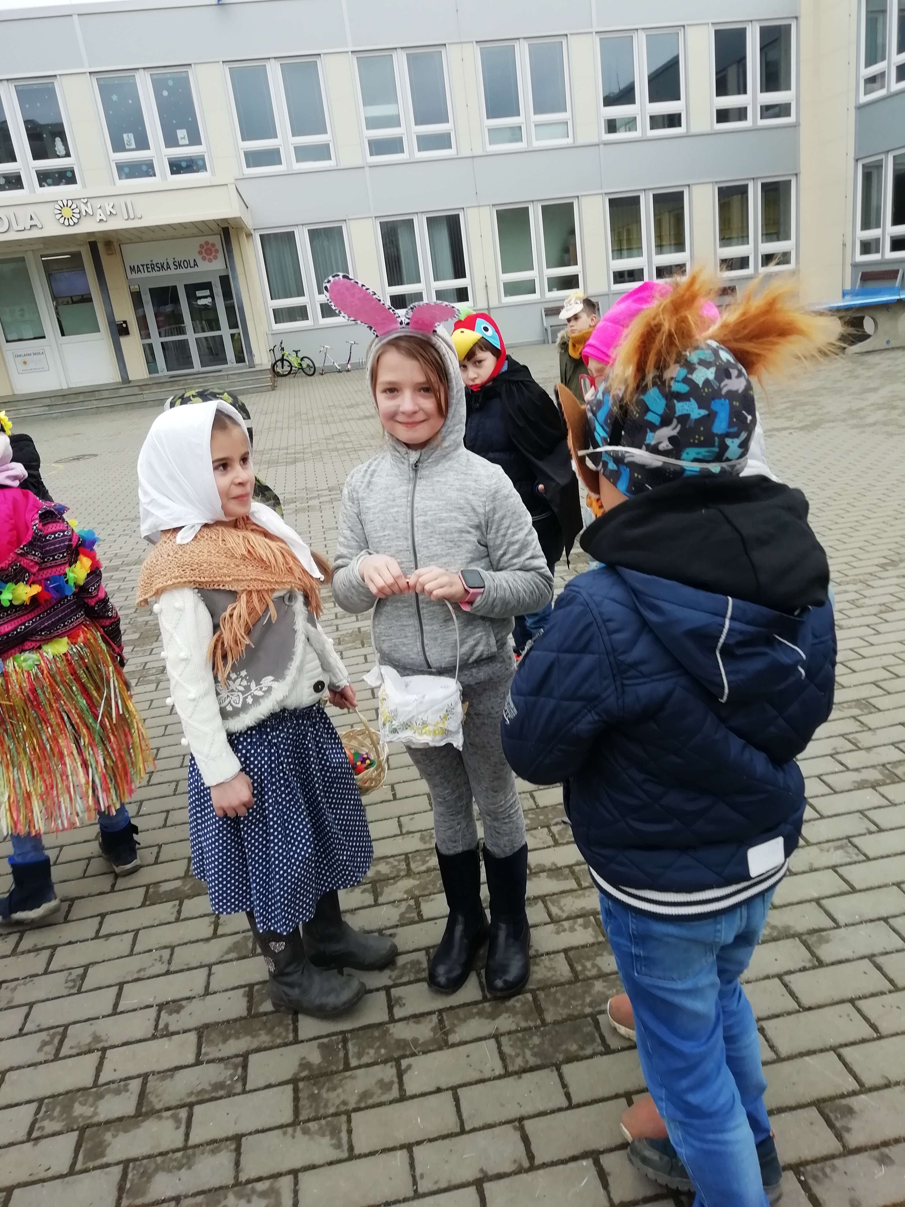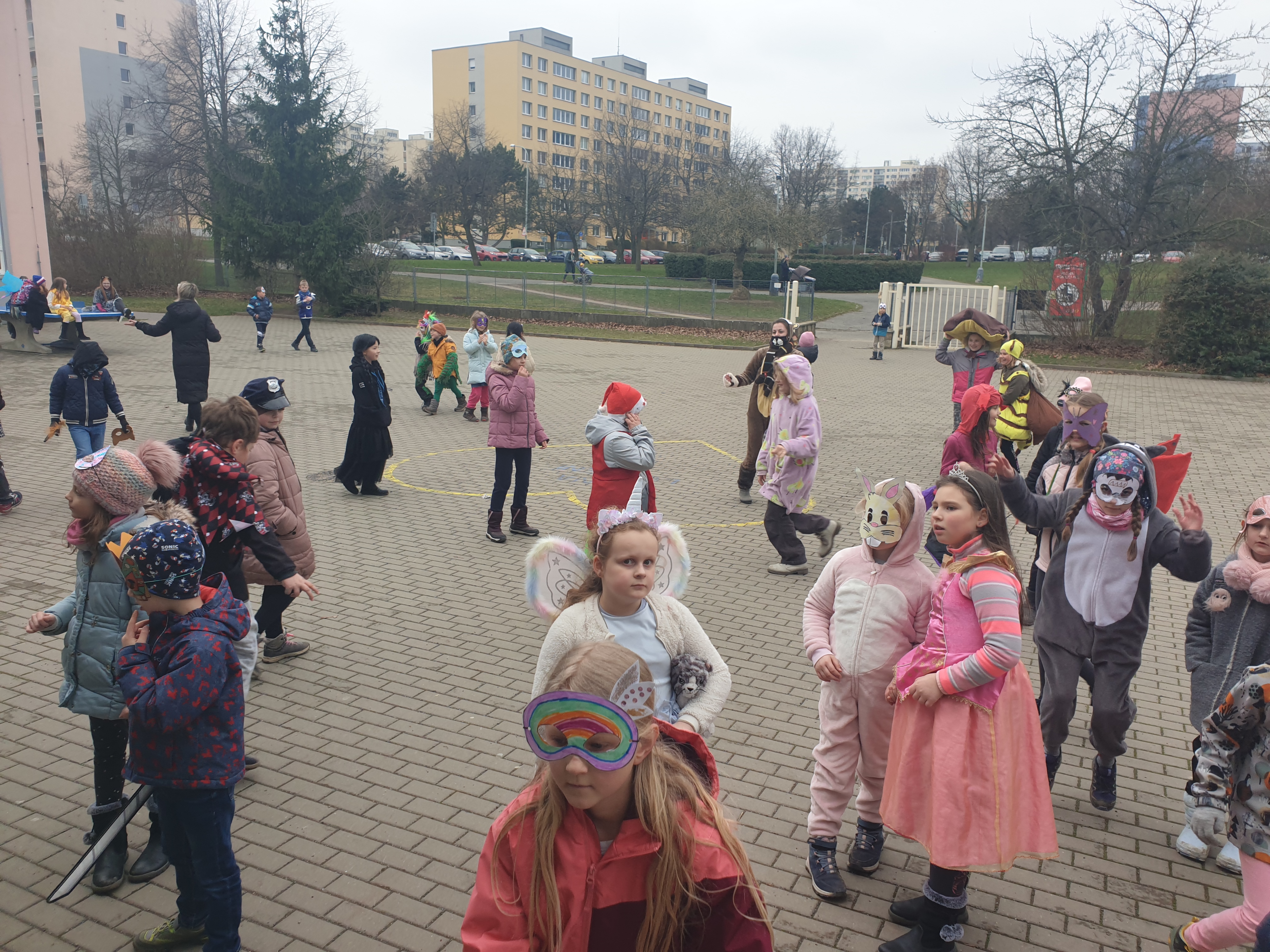 Venku: vycházky po okolí, pobyt na veřejném dětském hřišti, pobyt na školní zahradě – péče o květiny, individuální činnosti dle potřeb každého dítěte. Vycházky do lesoparku – pozorování přírody.