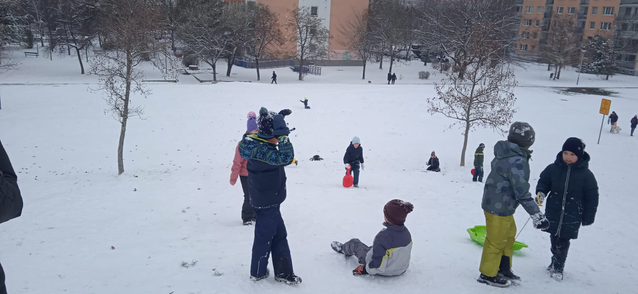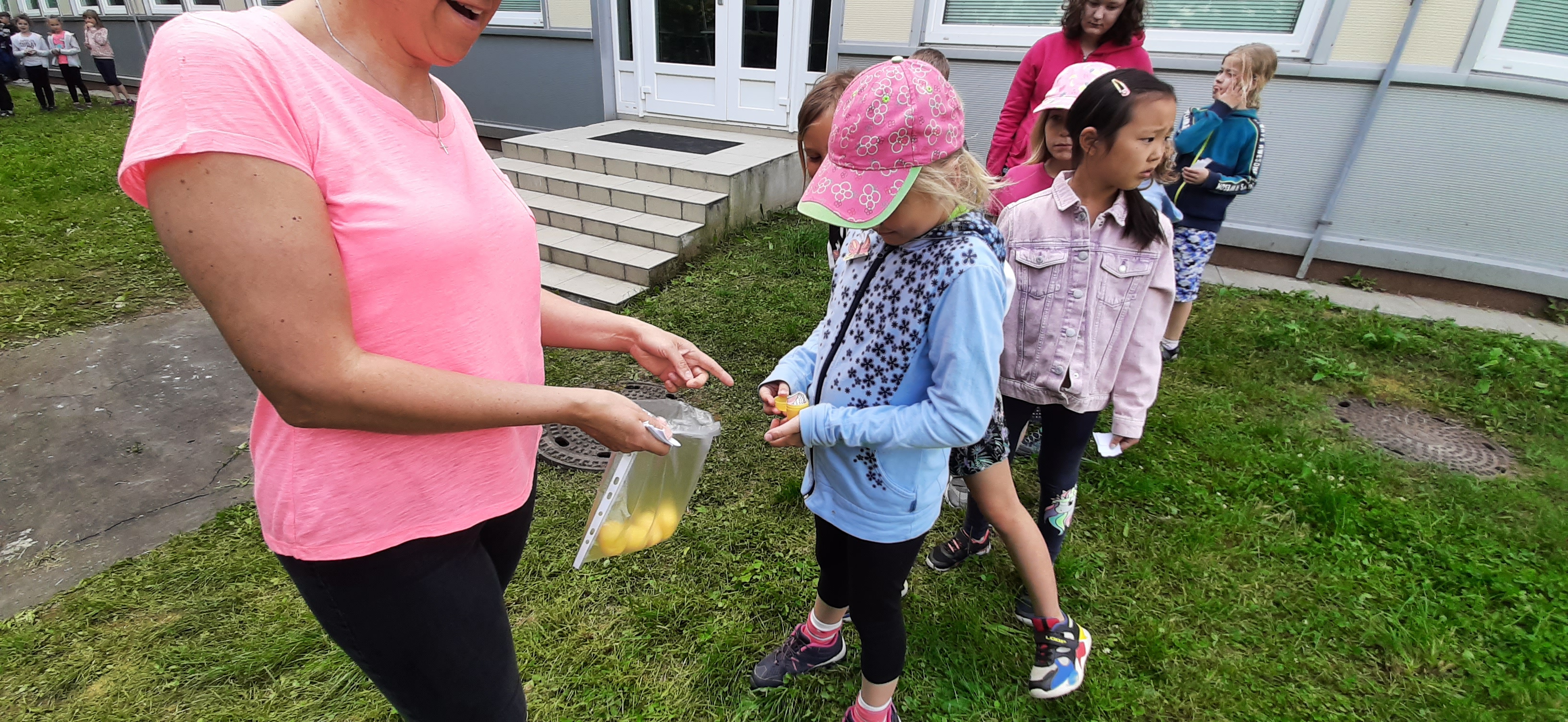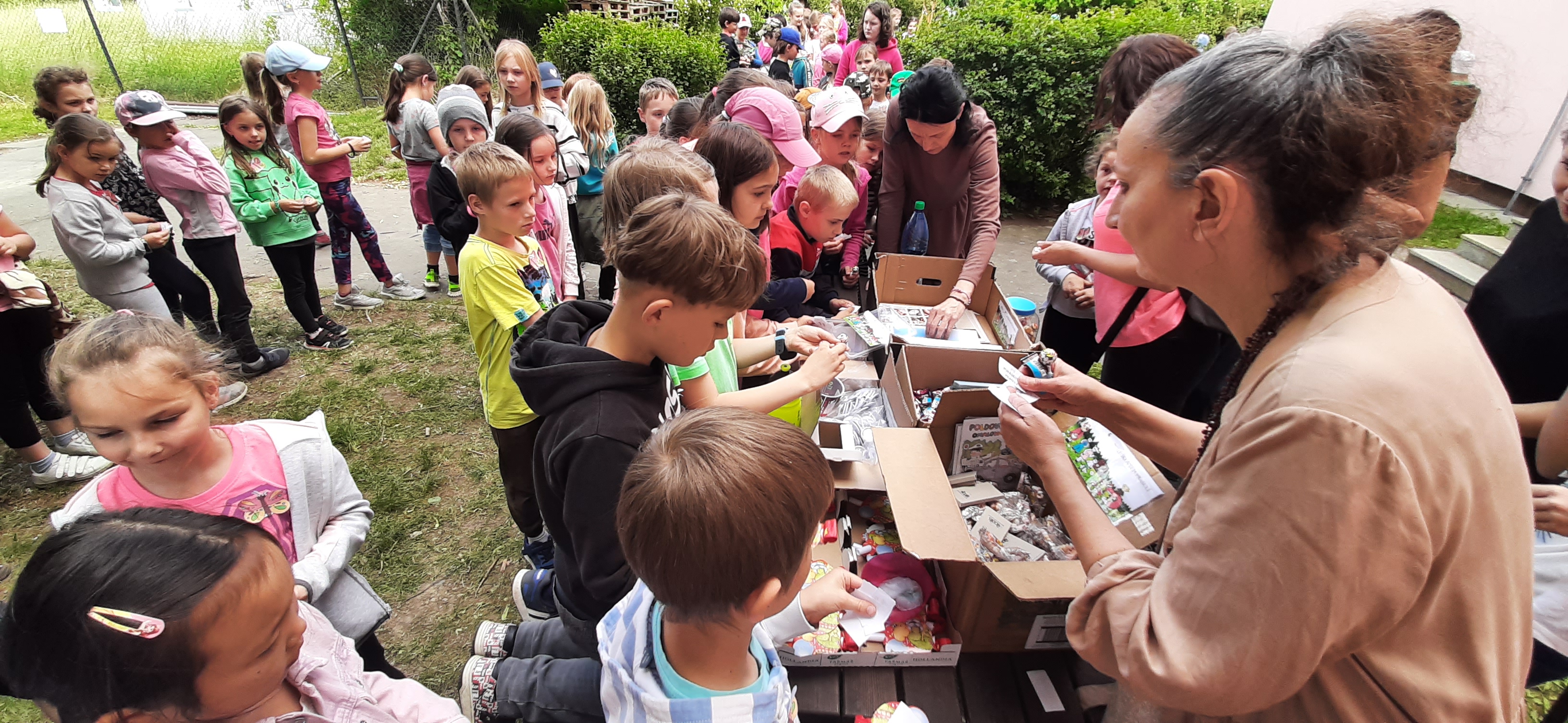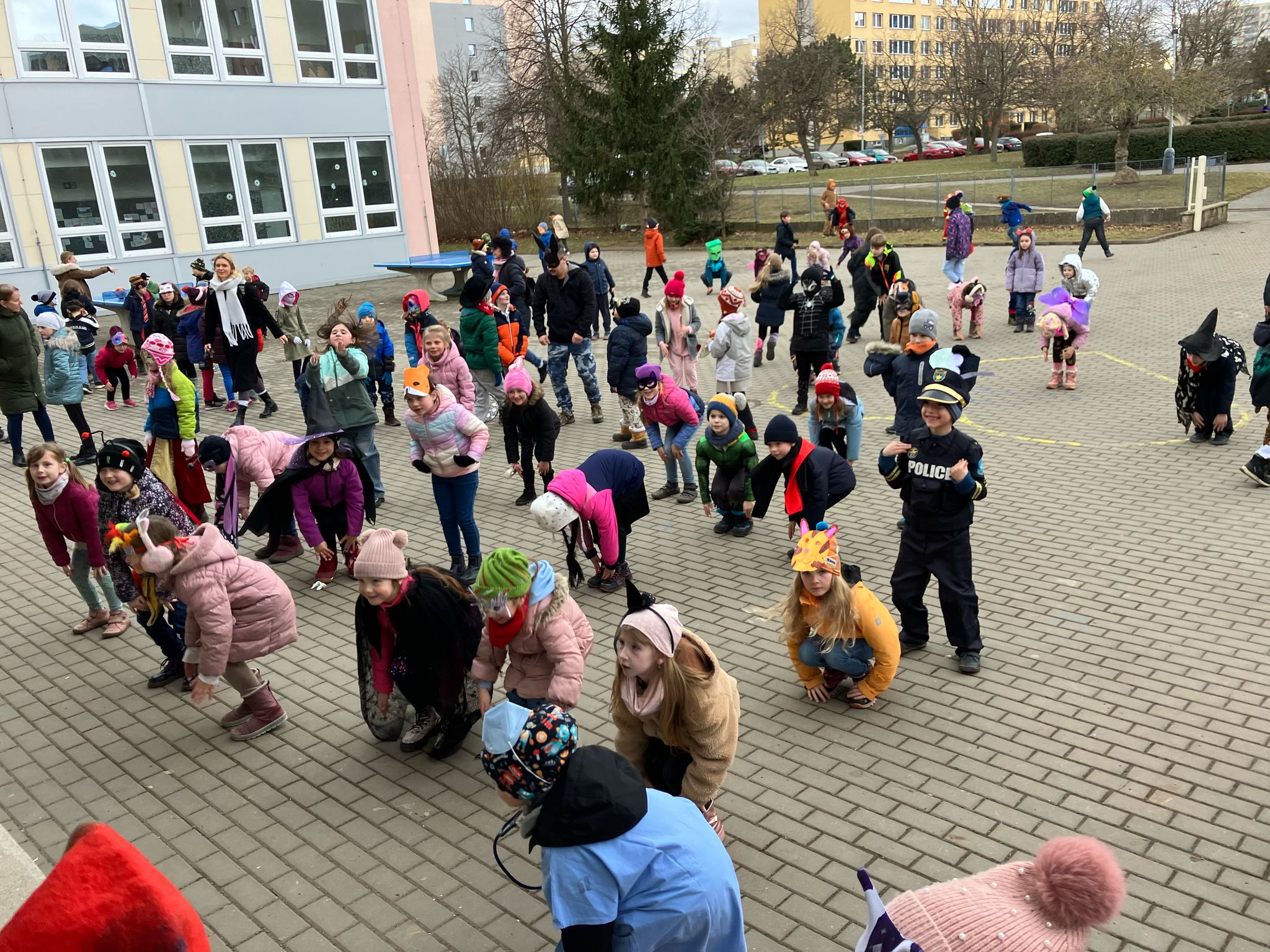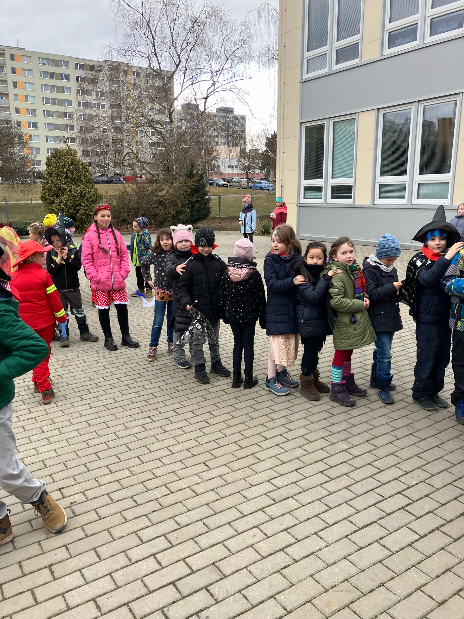 Venku: vycházky po okolí, pobyt na veřejném dětském hřišti, pobyt na školní zahradě – péče o květiny, individuální činnosti dle potřeb každého dítěte. Vycházky do lesoparku – pozorování přírody.