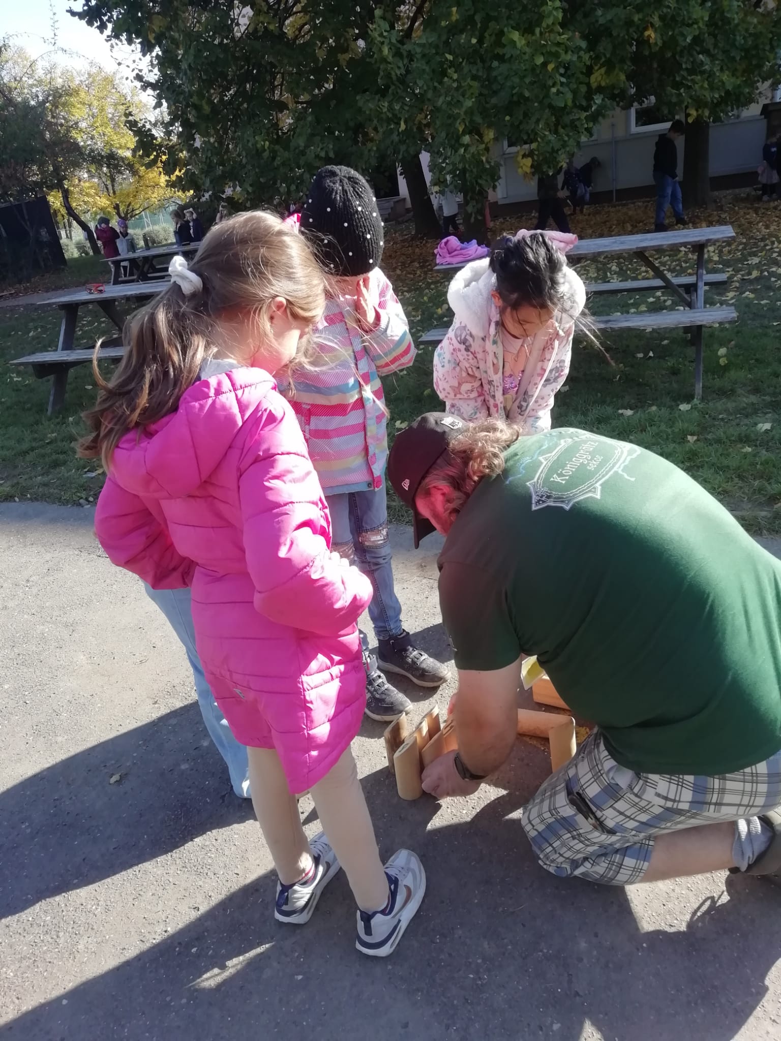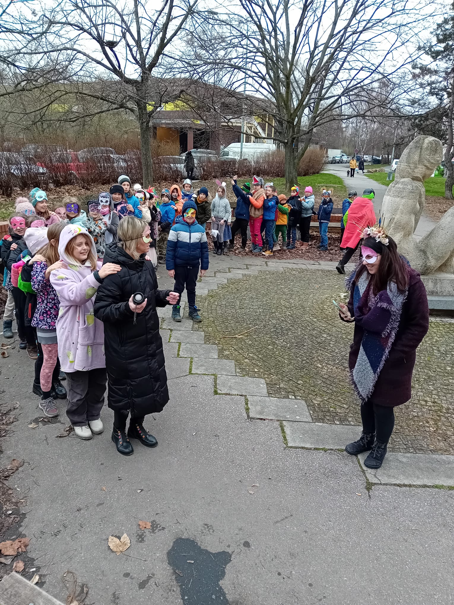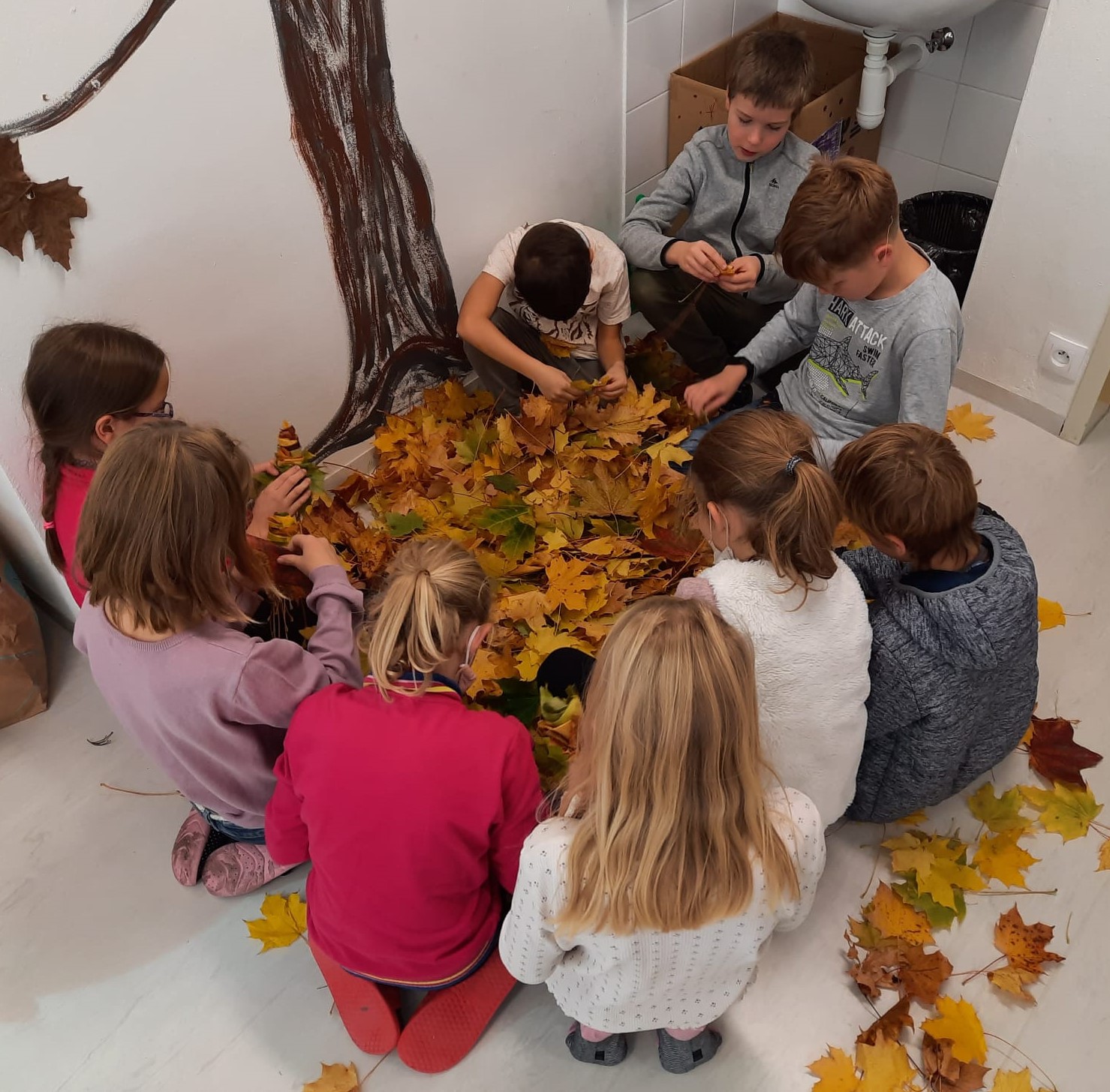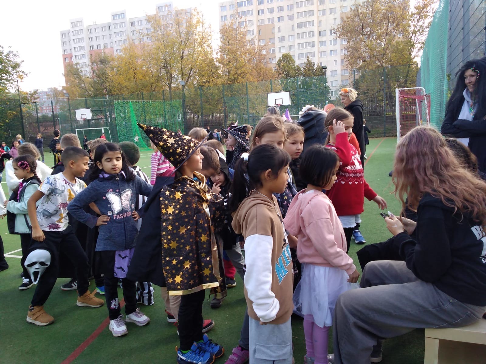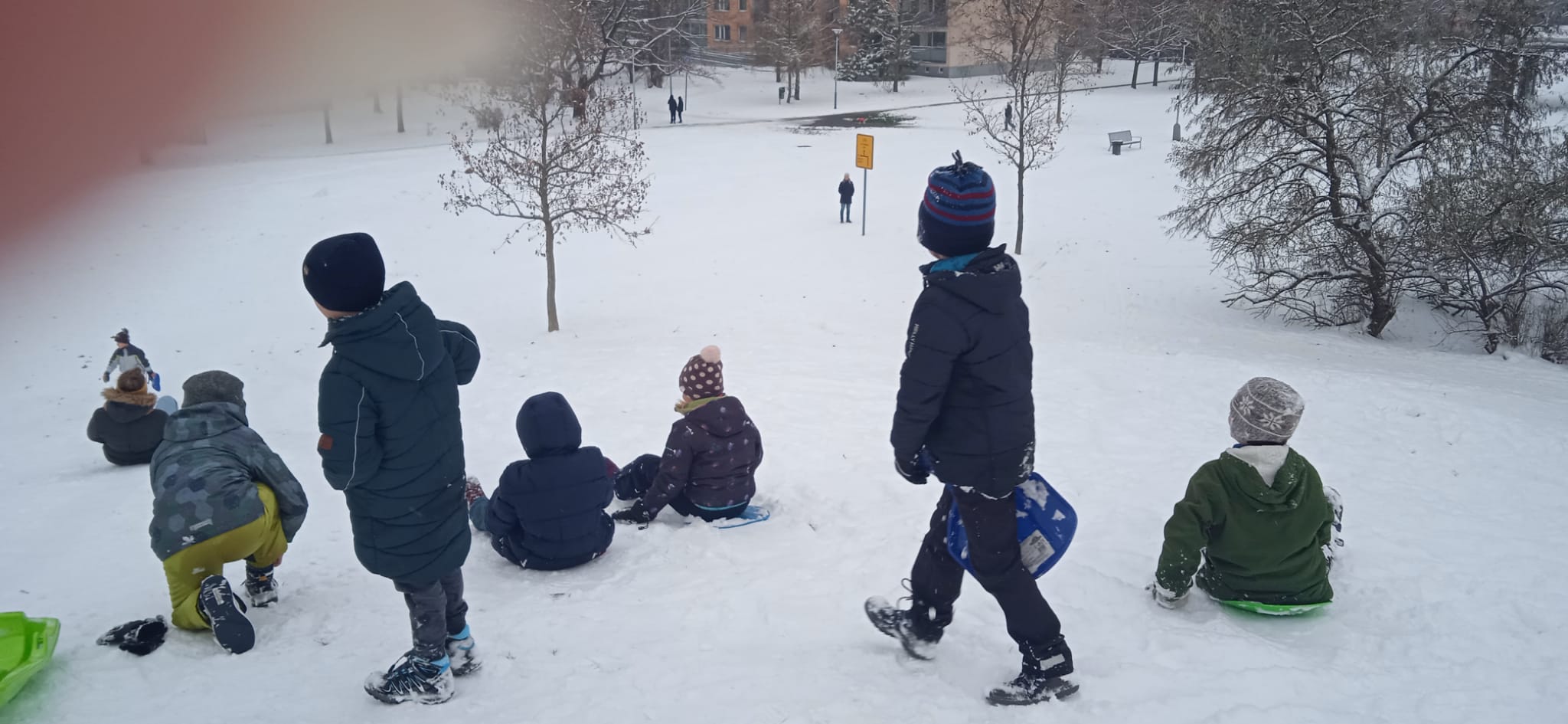 Venku: vycházky po okolí, pobyt na veřejném dětském hřišti, pobyt na školní zahradě – péče o květiny, individuální činnosti dle potřeb každého dítěte. Vycházky do lesoparku – pozorování přírody.