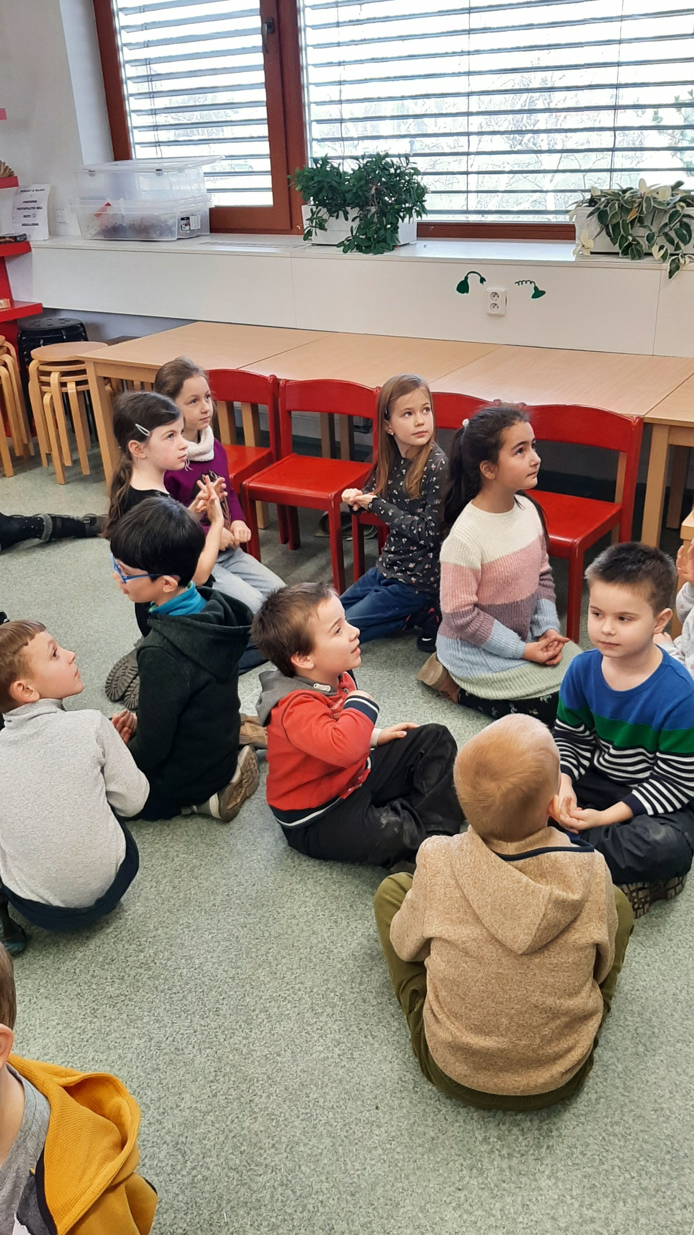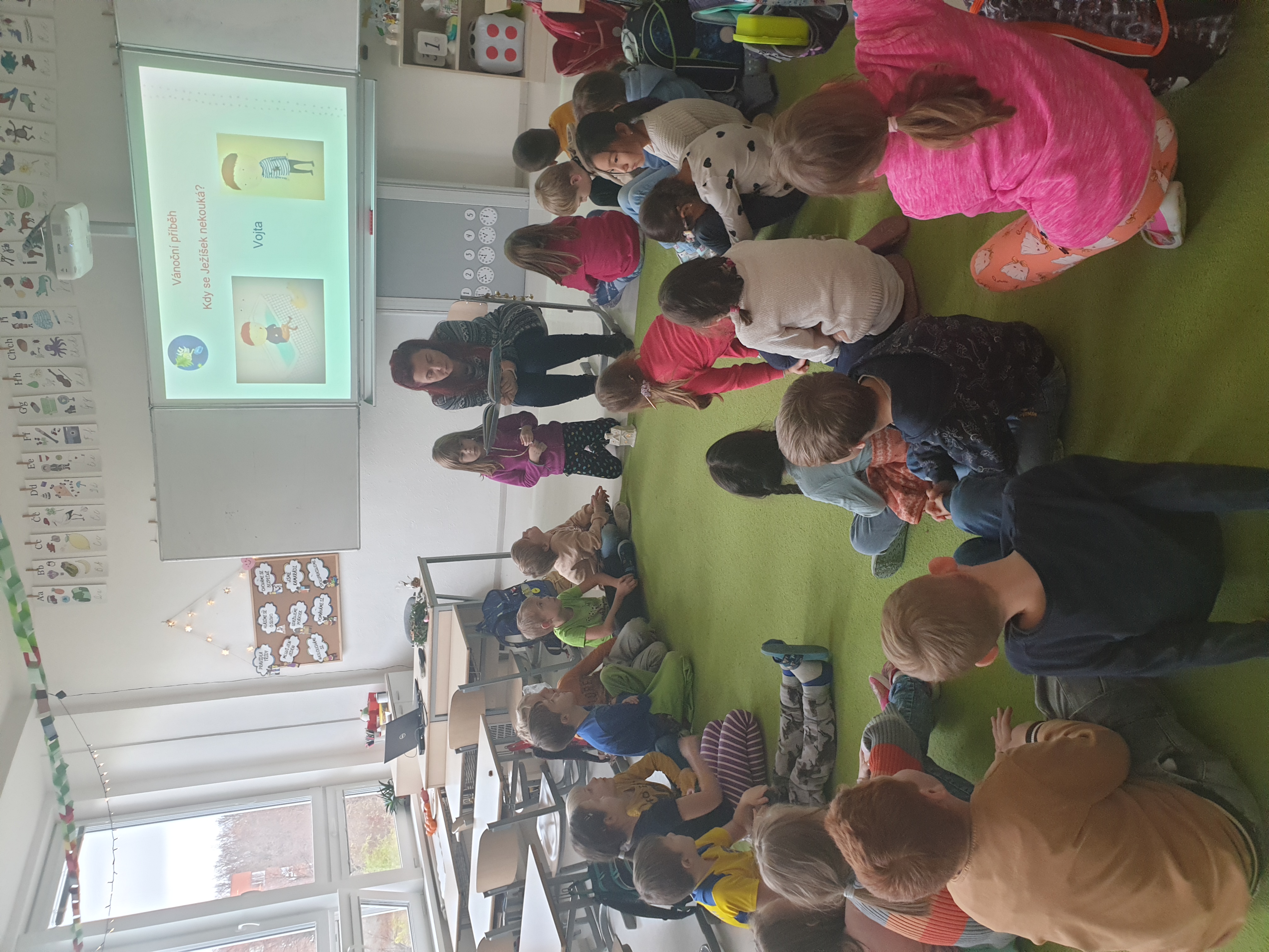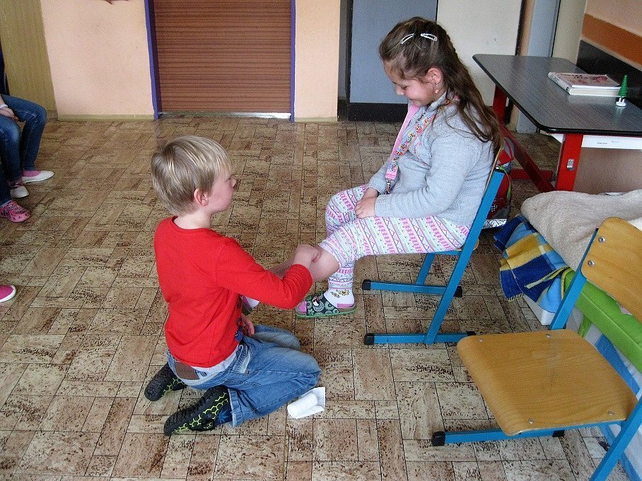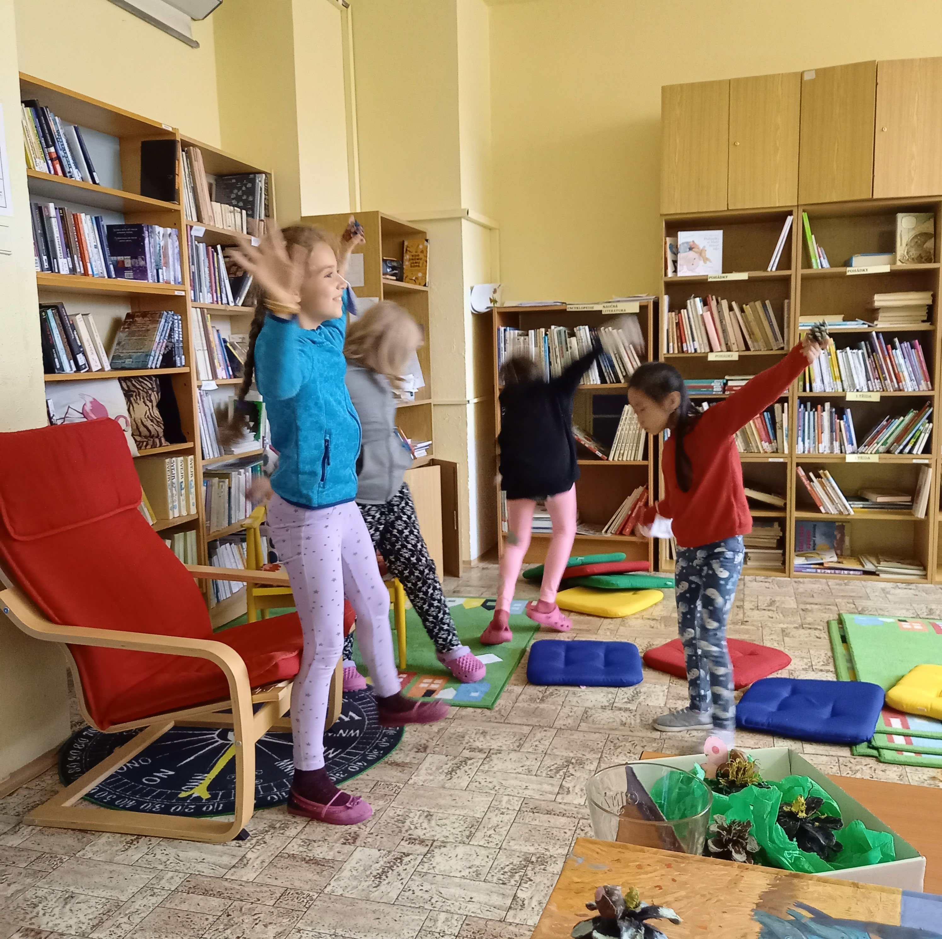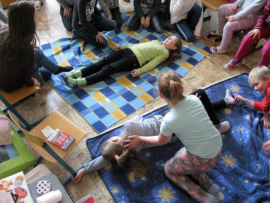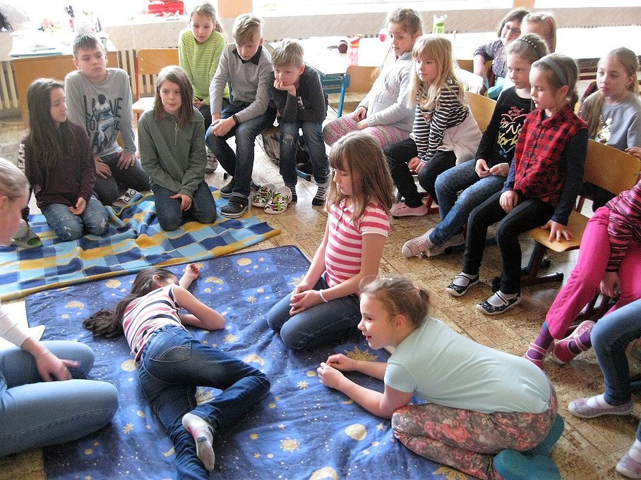 a) Relaxace, četba, odpočinek na koberci, klidové hry, vyprávění - dialog s dětmi.