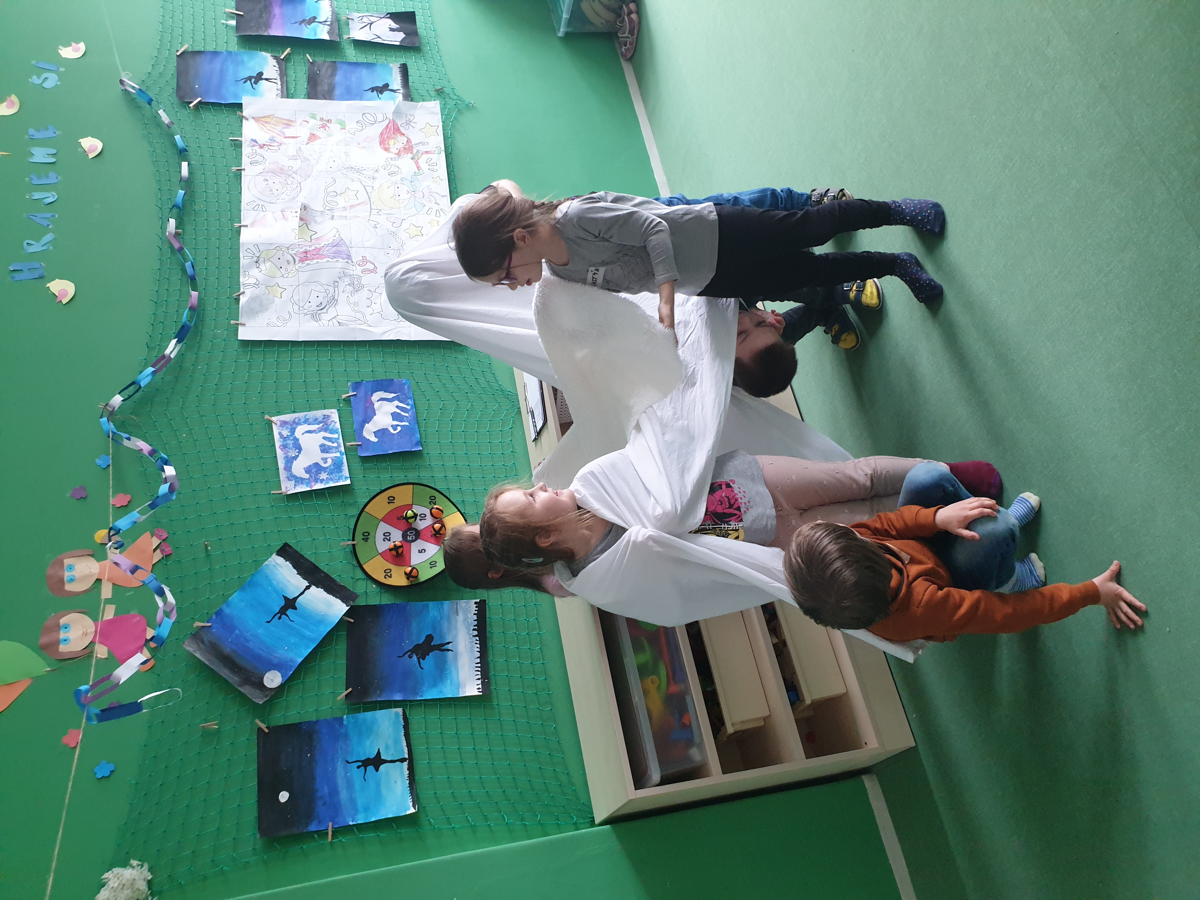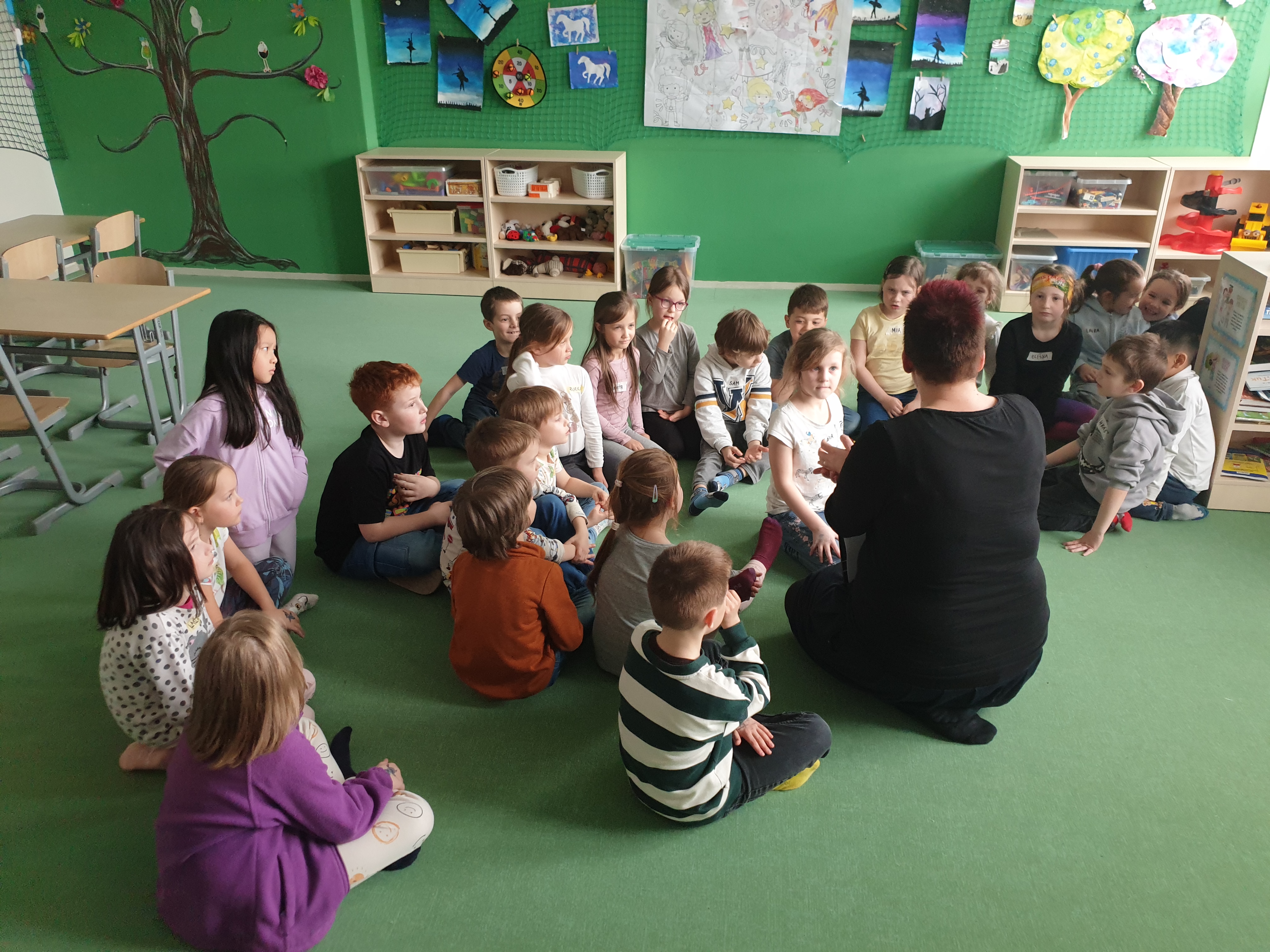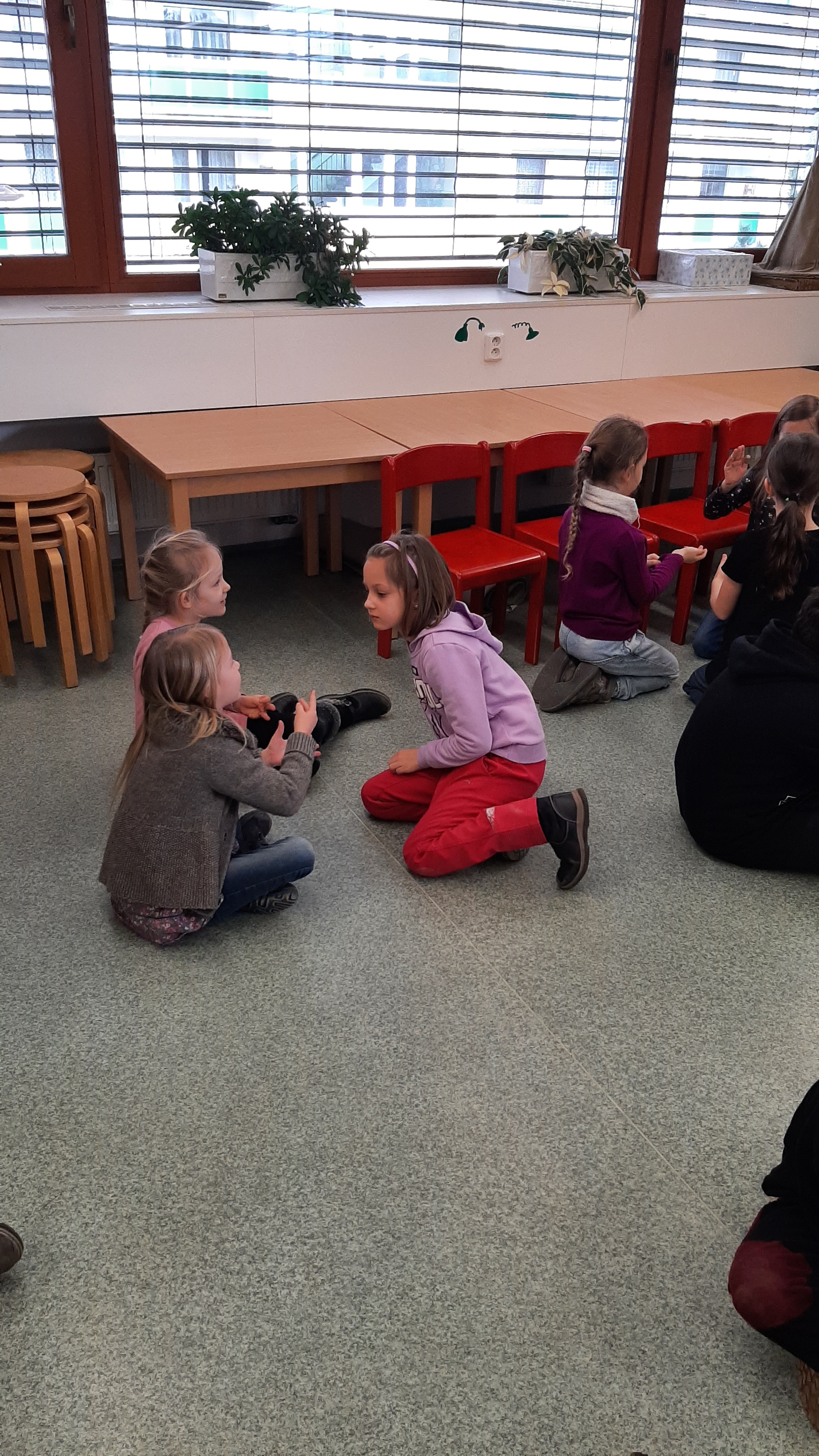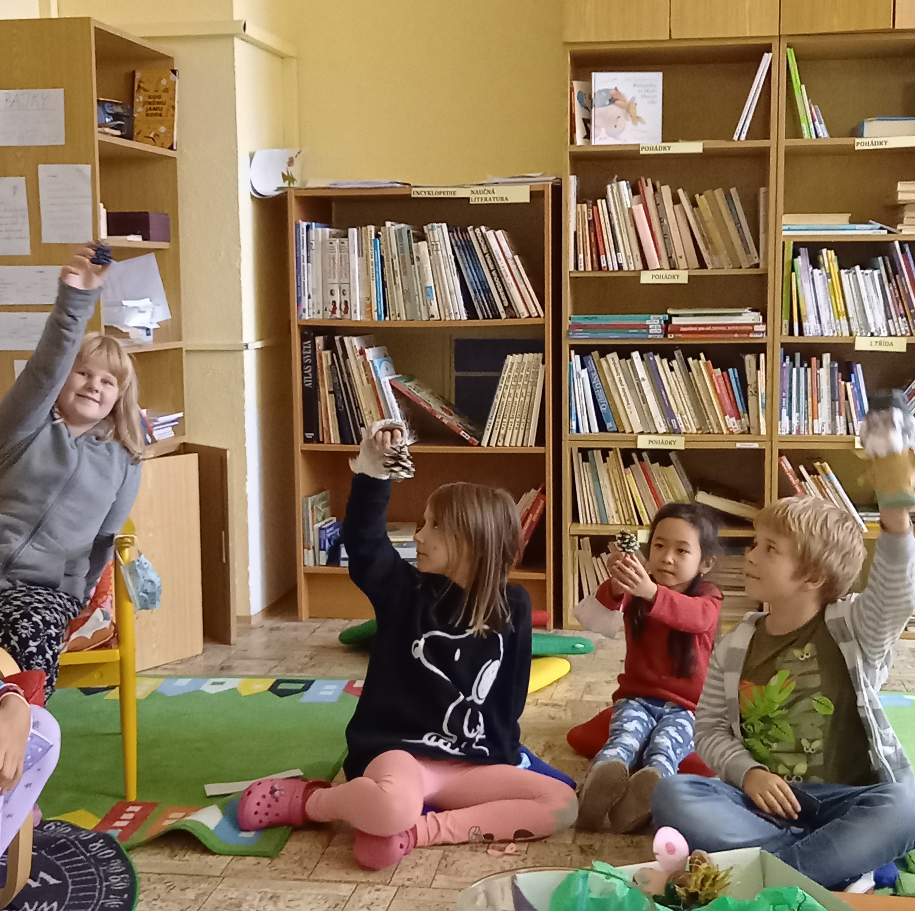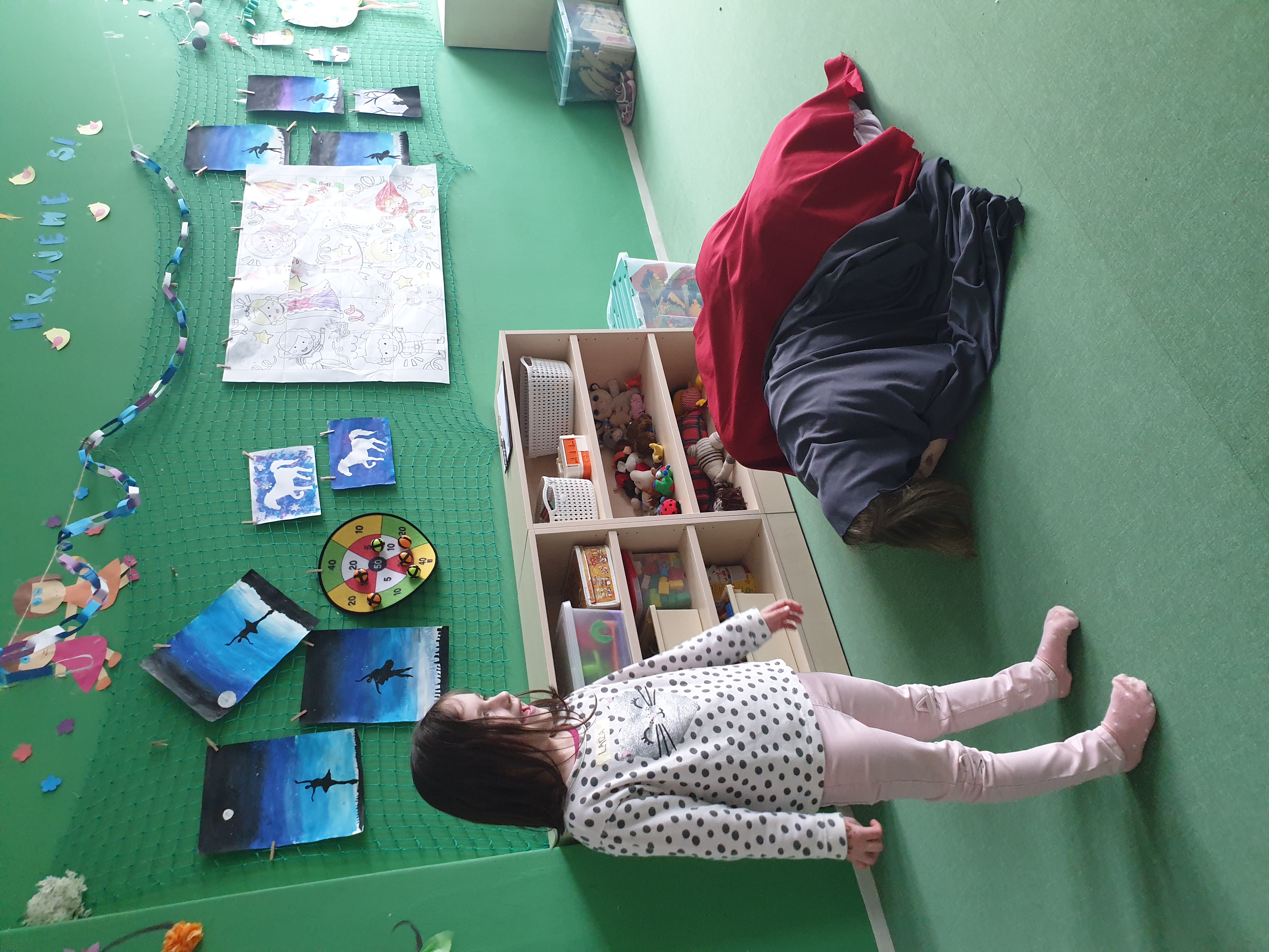 a) Relaxace, četba, odpočinek na koberci, klidové hry, vyprávění - dialog s dětmi.