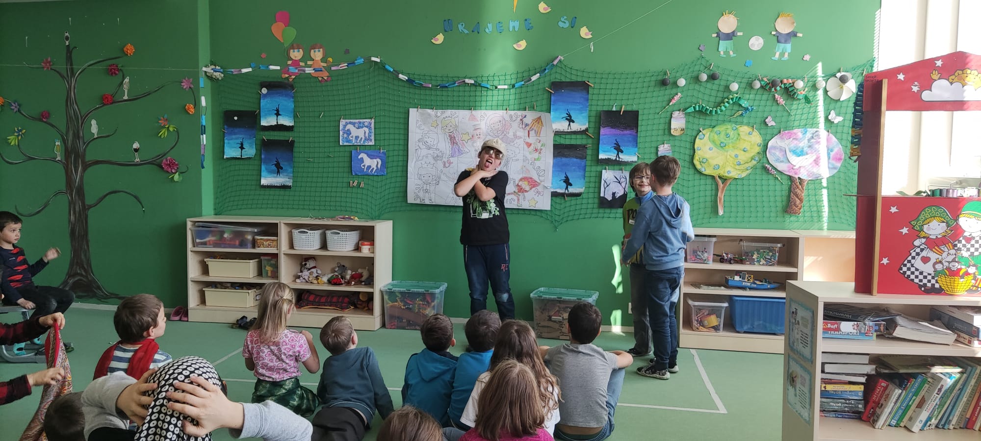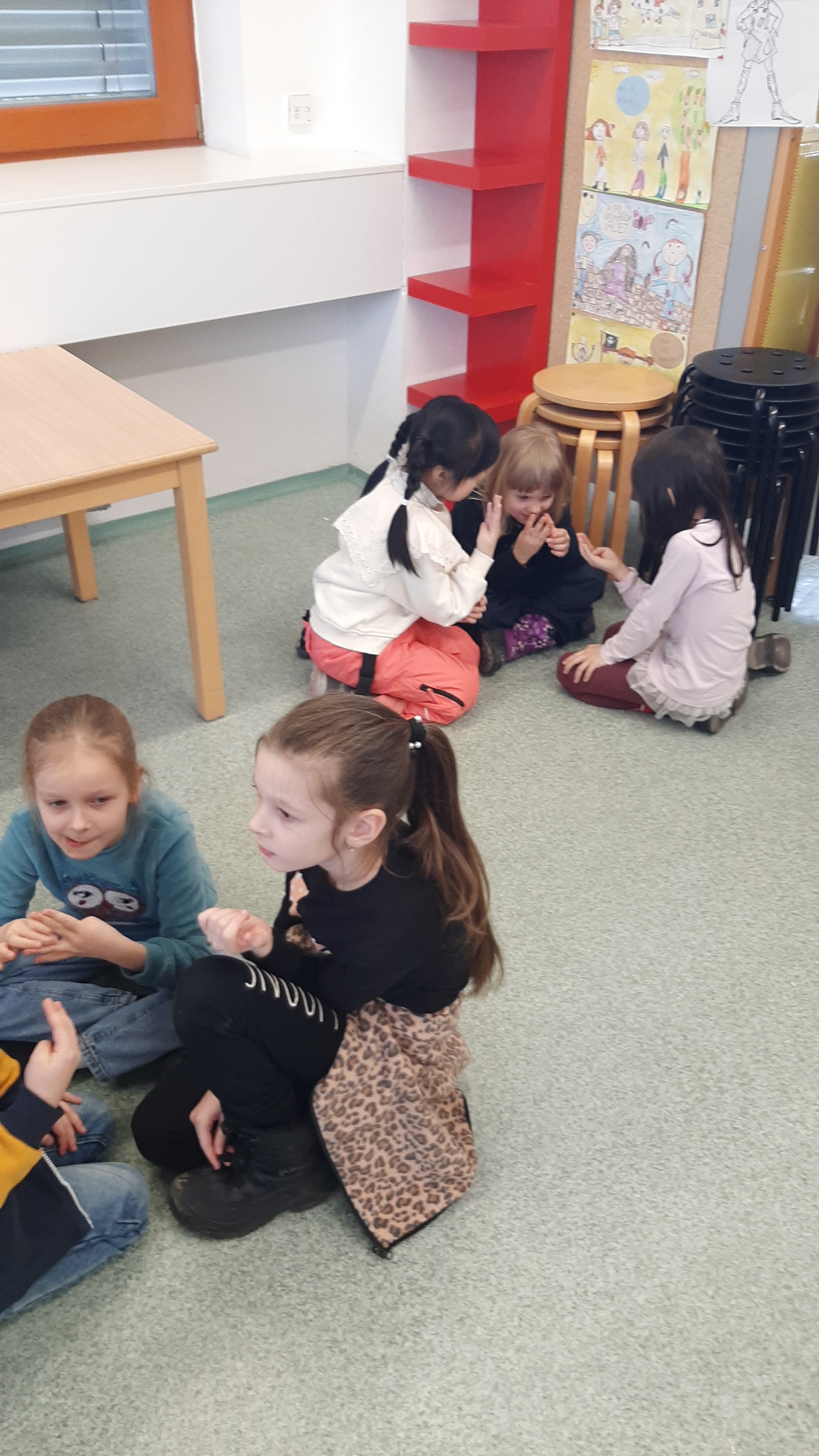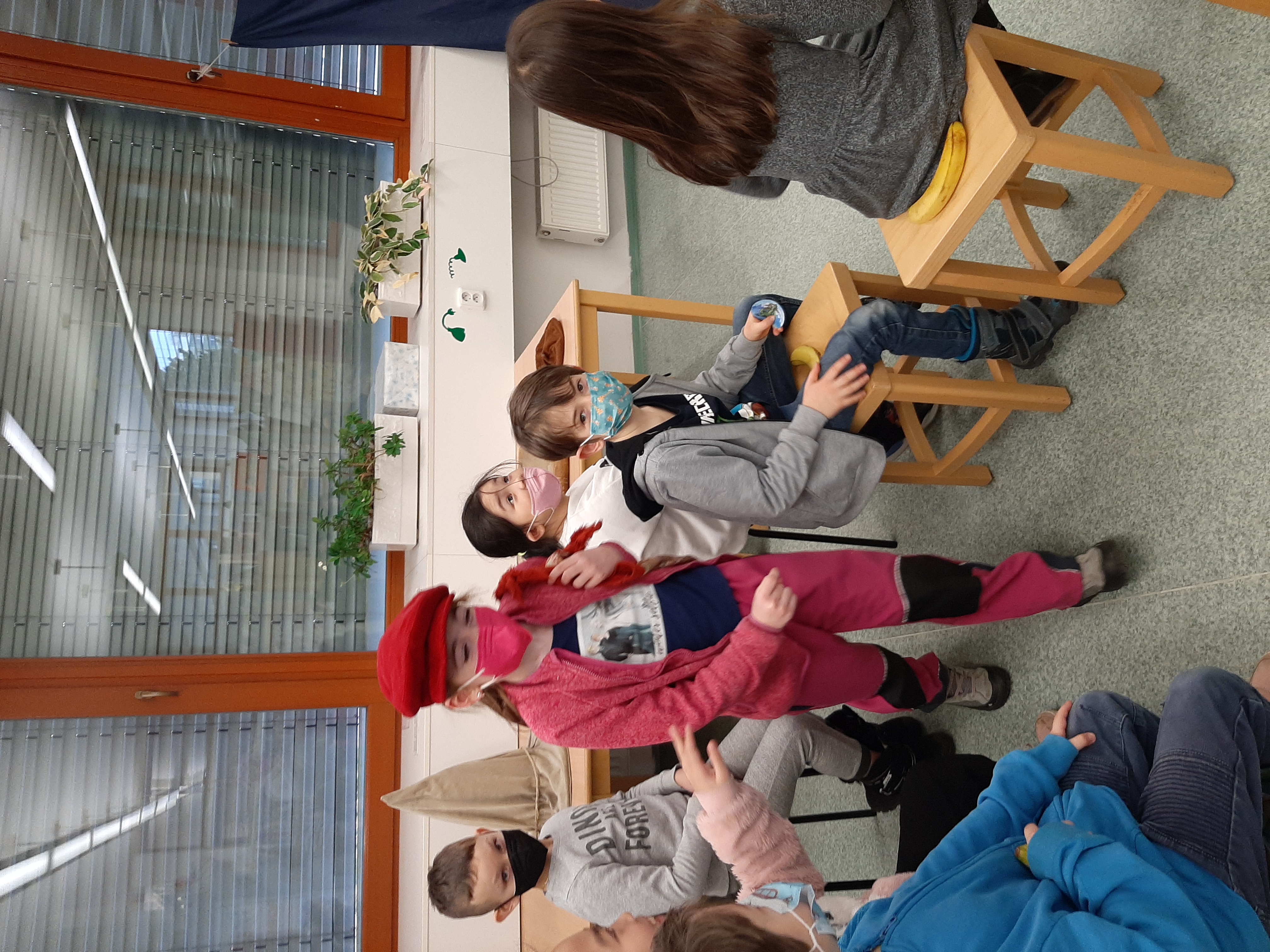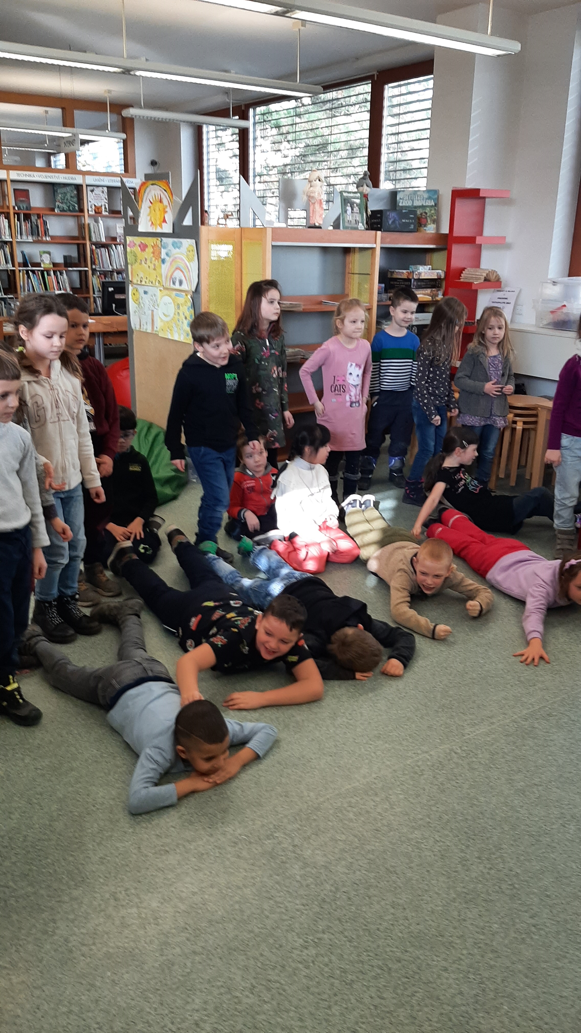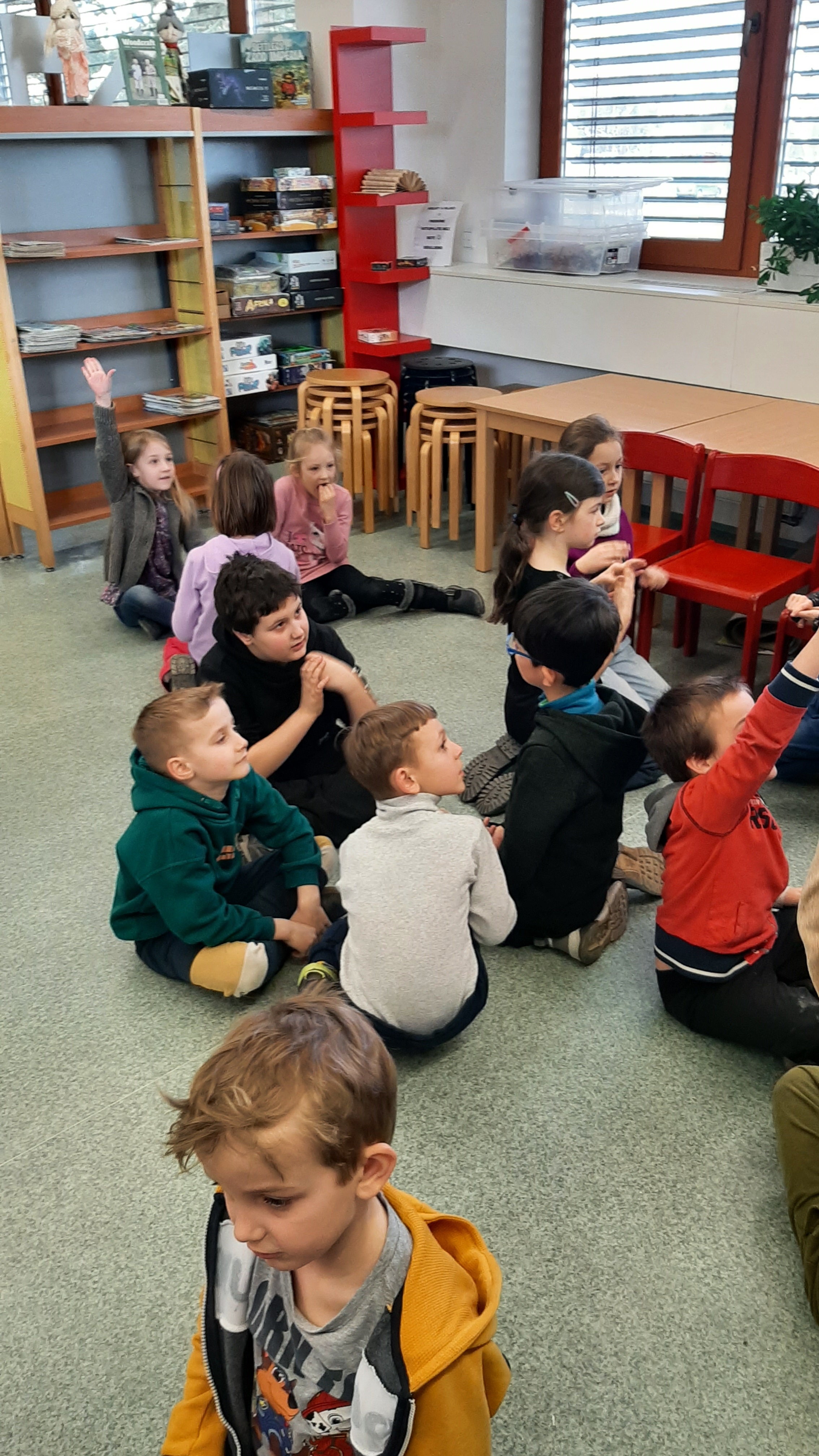 a) Relaxace, četba, odpočinek na koberci, klidové hry, vyprávění - dialog s dětmi.