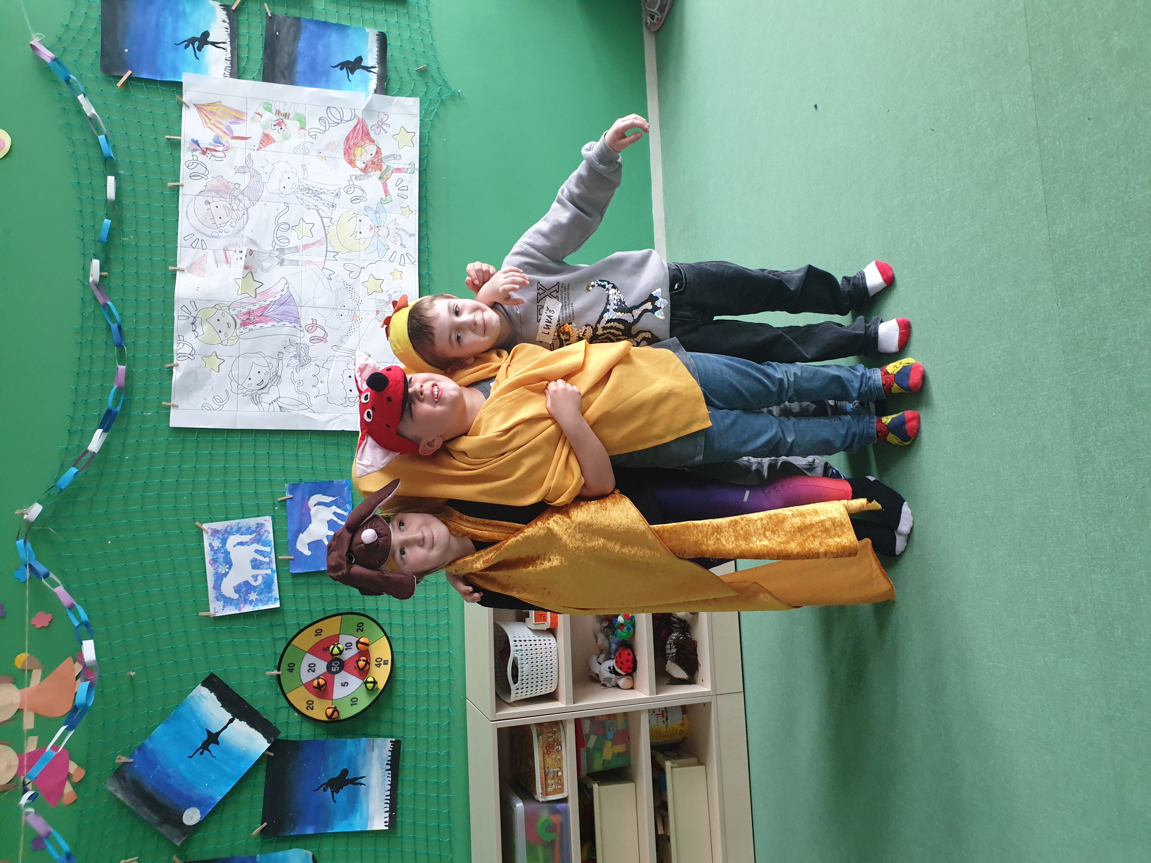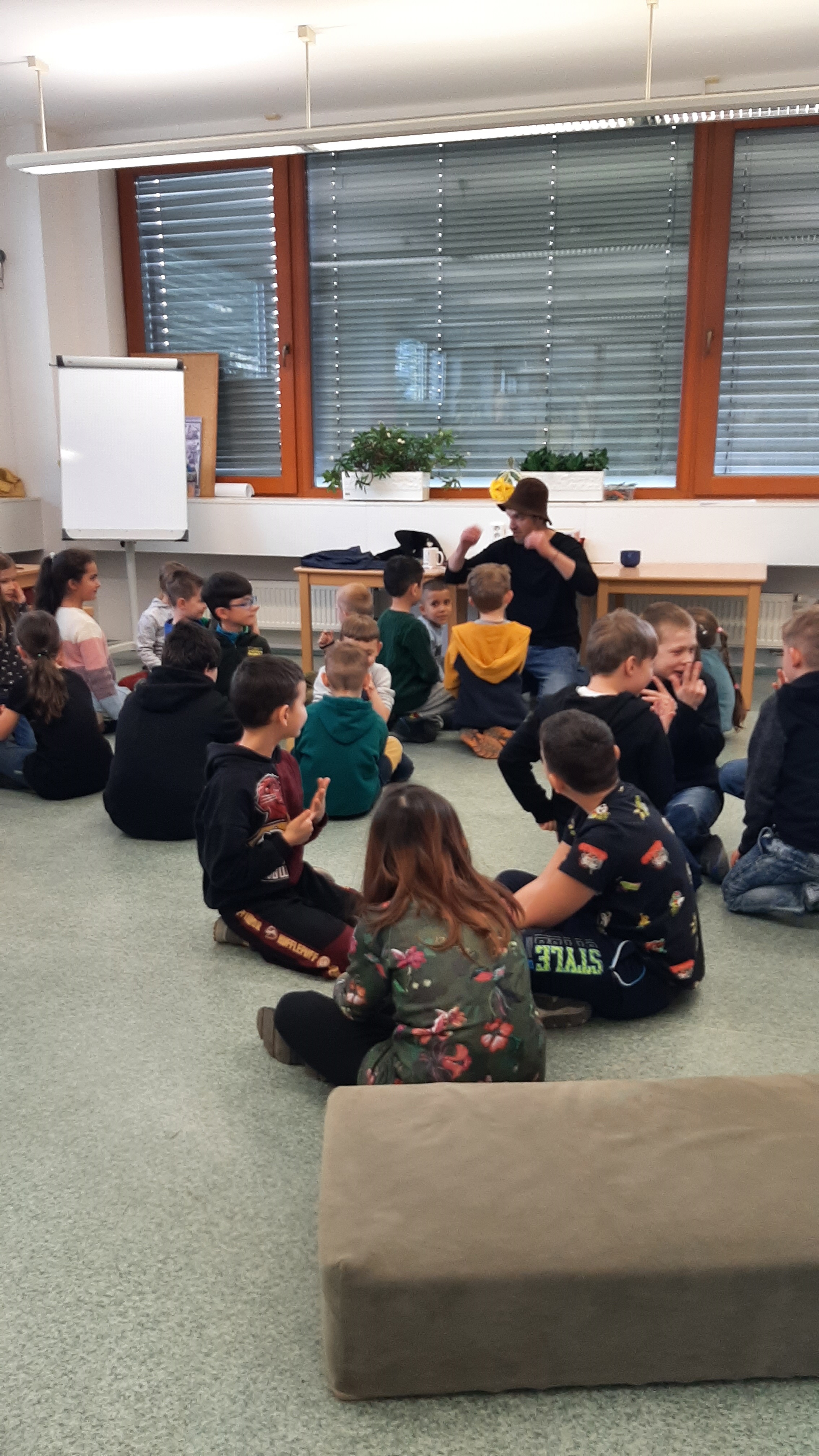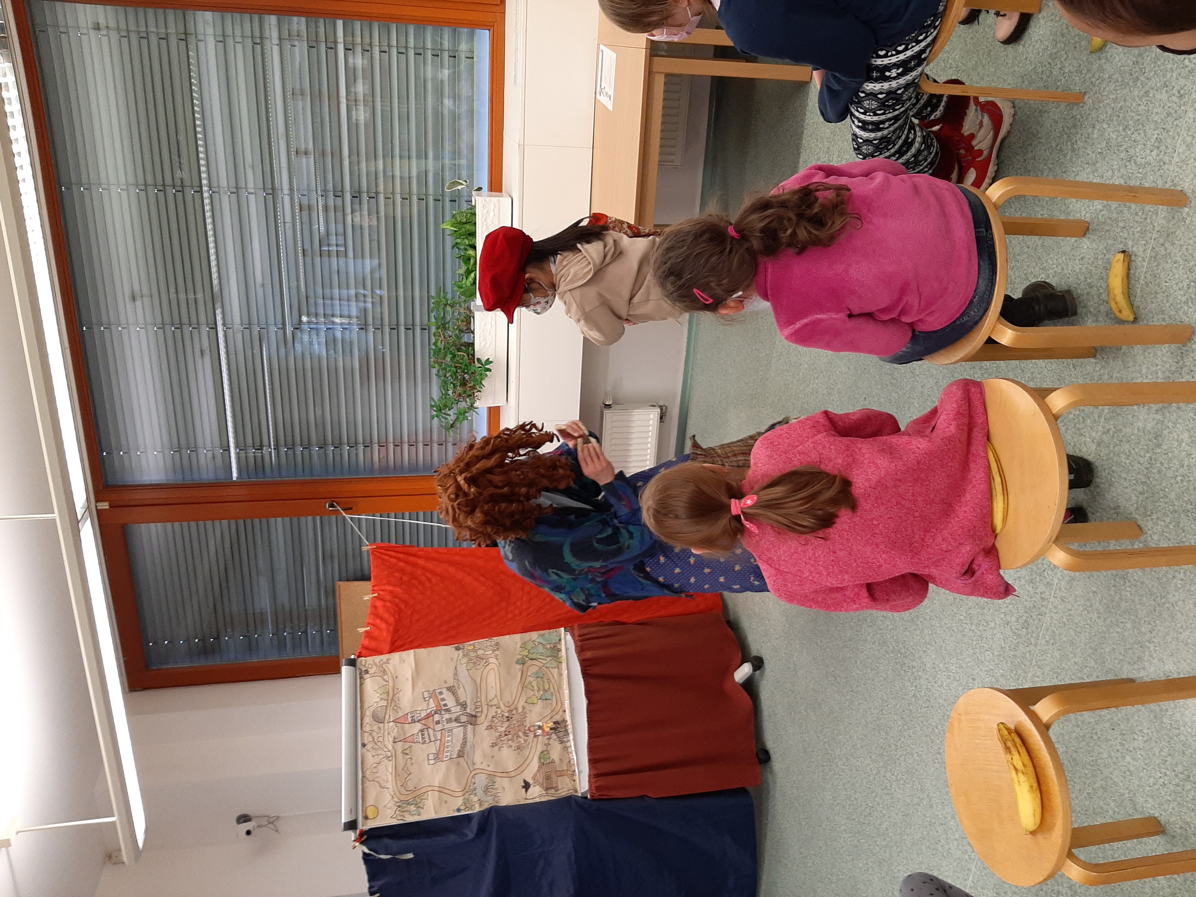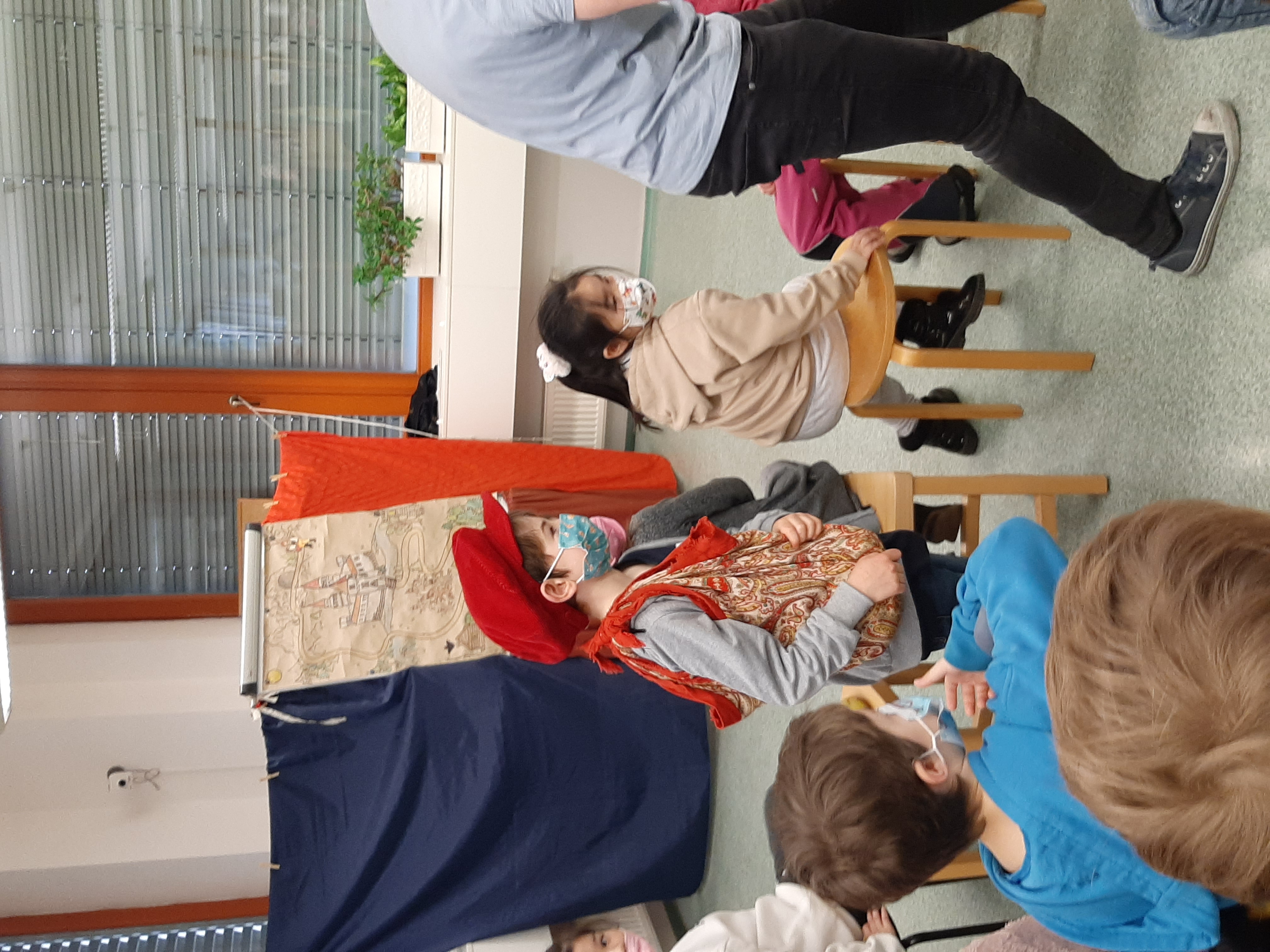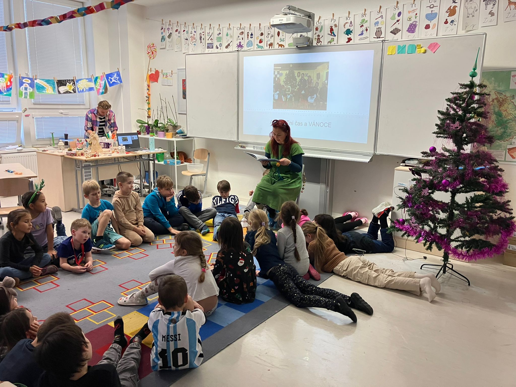 a) Relaxace, četba, odpočinek na koberci, klidové hry, vyprávění - dialog s dětmi.
