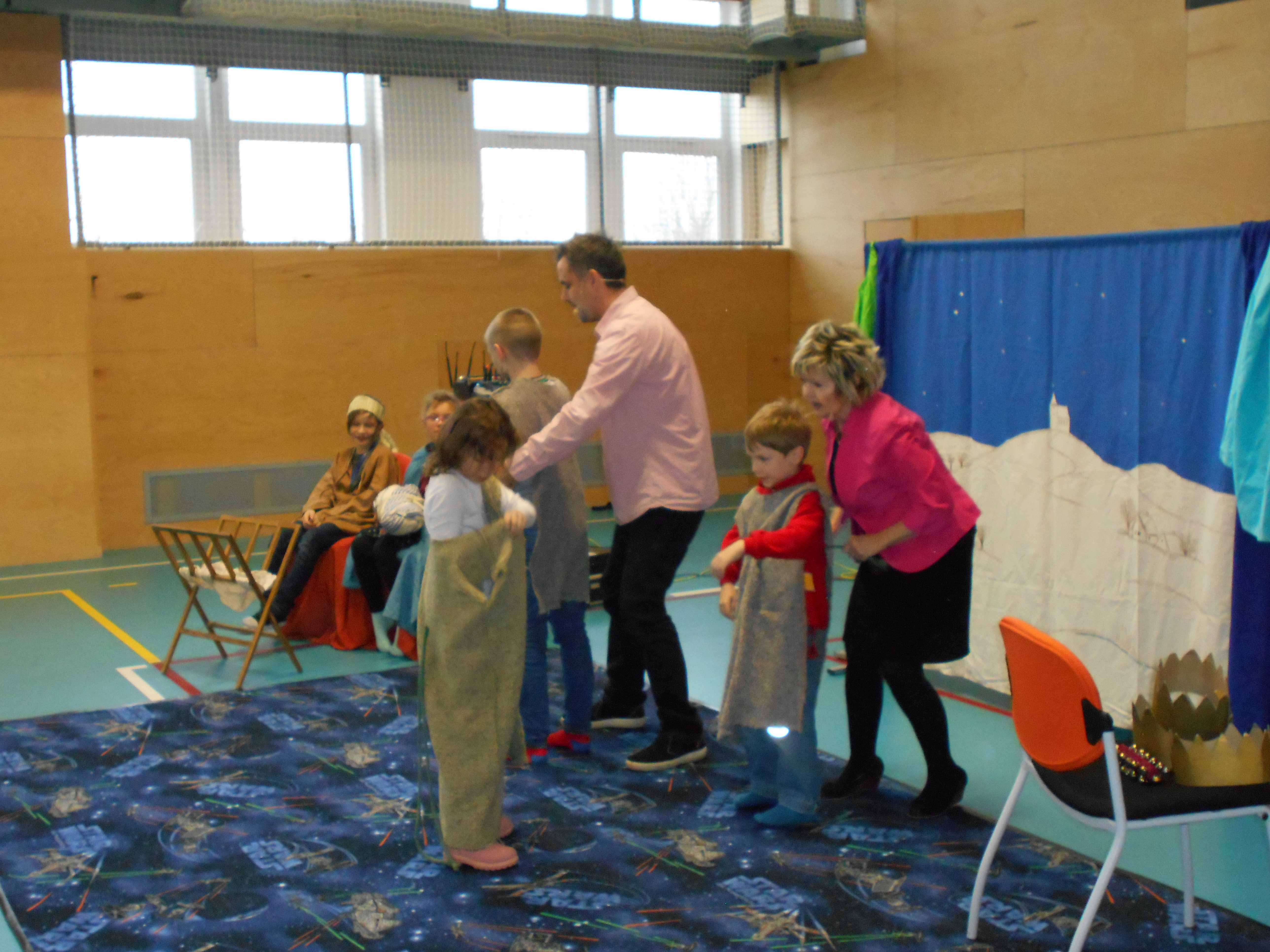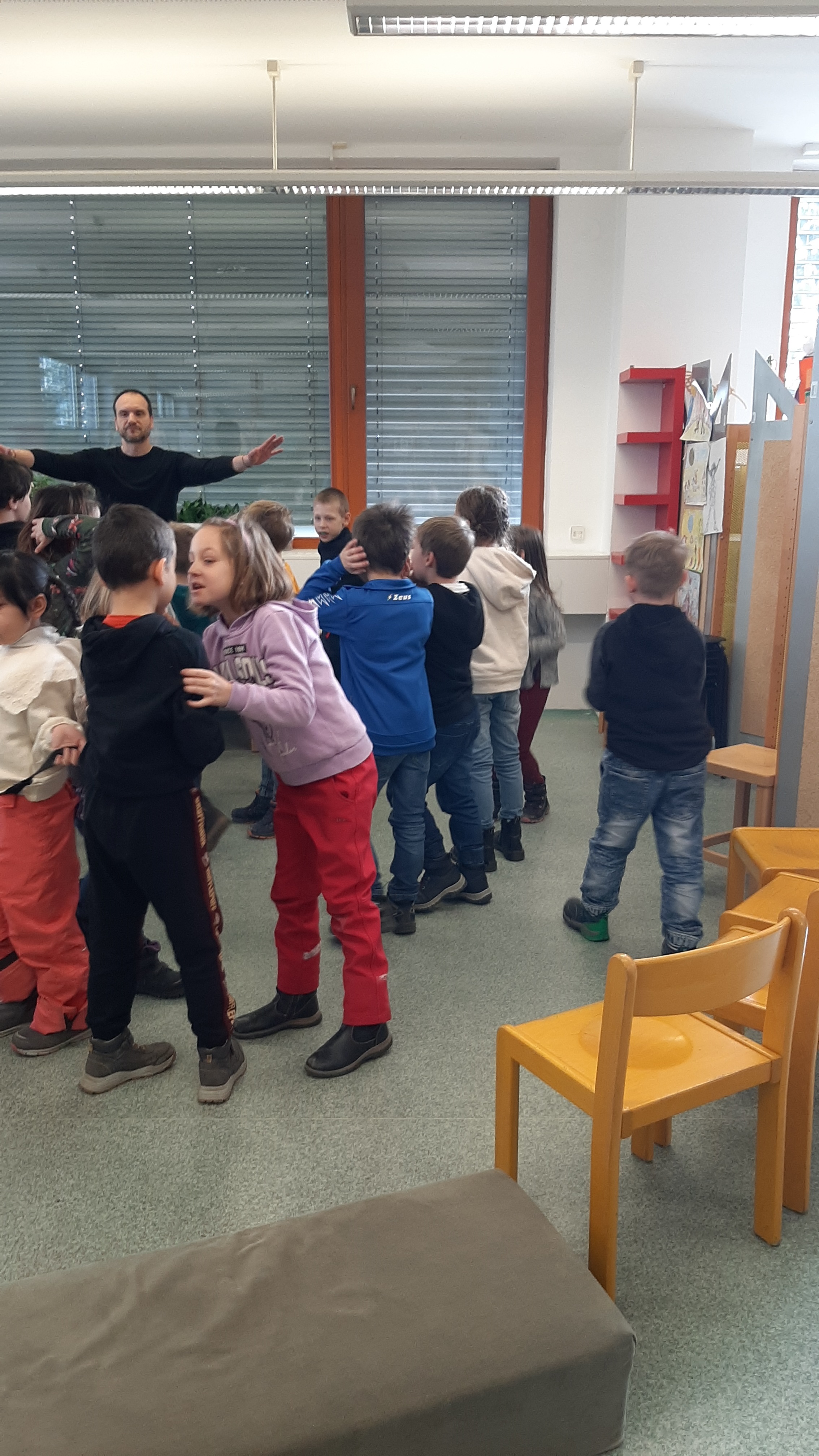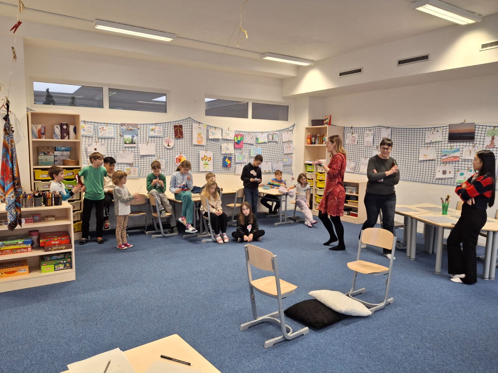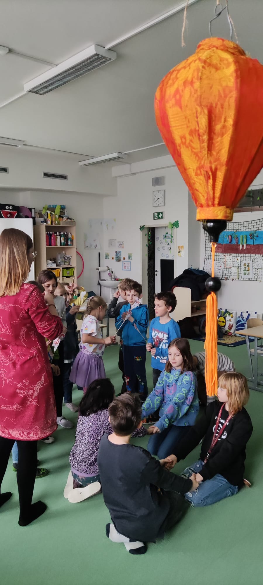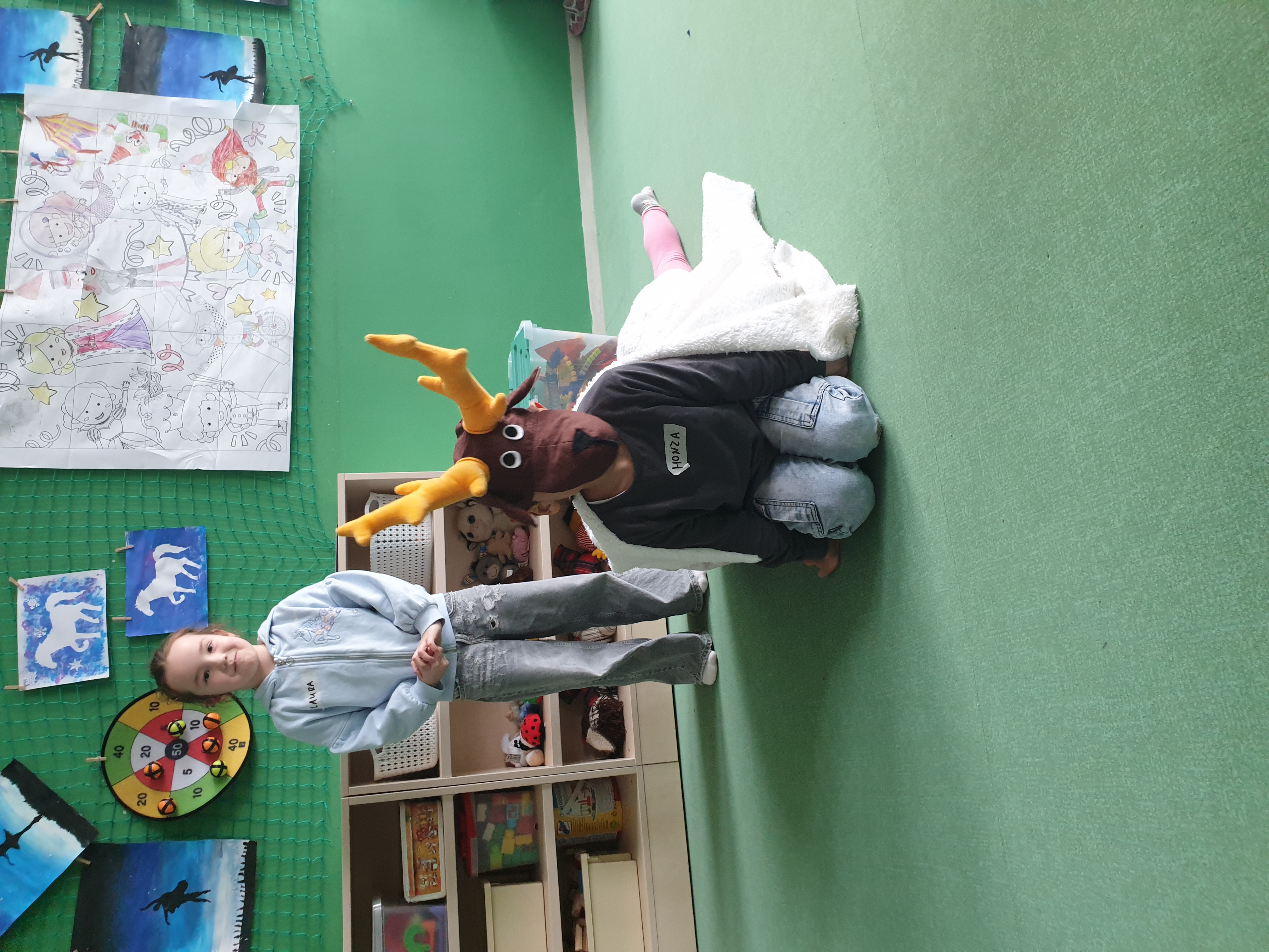 a) Relaxace, četba, odpočinek na koberci, klidové hry, vyprávění - dialog s dětmi.