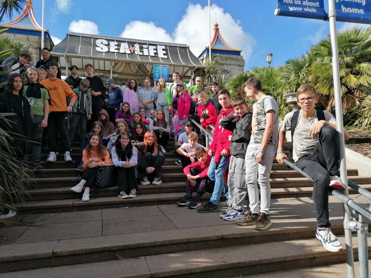 I přes zpoždění kvůli uzavření dálnice a velké vlny při přejezdu trajektem, jsme všichni v pořádku. Děti si víc než užily Harryho Pottera a ubytovaly se v rodinách. První zážitky jsou prima. Děti jsou spokojené, dokážou se dorozumět a večeře i snídaně jim chutnala. Dnes máme před sebou den plný londýnských památek