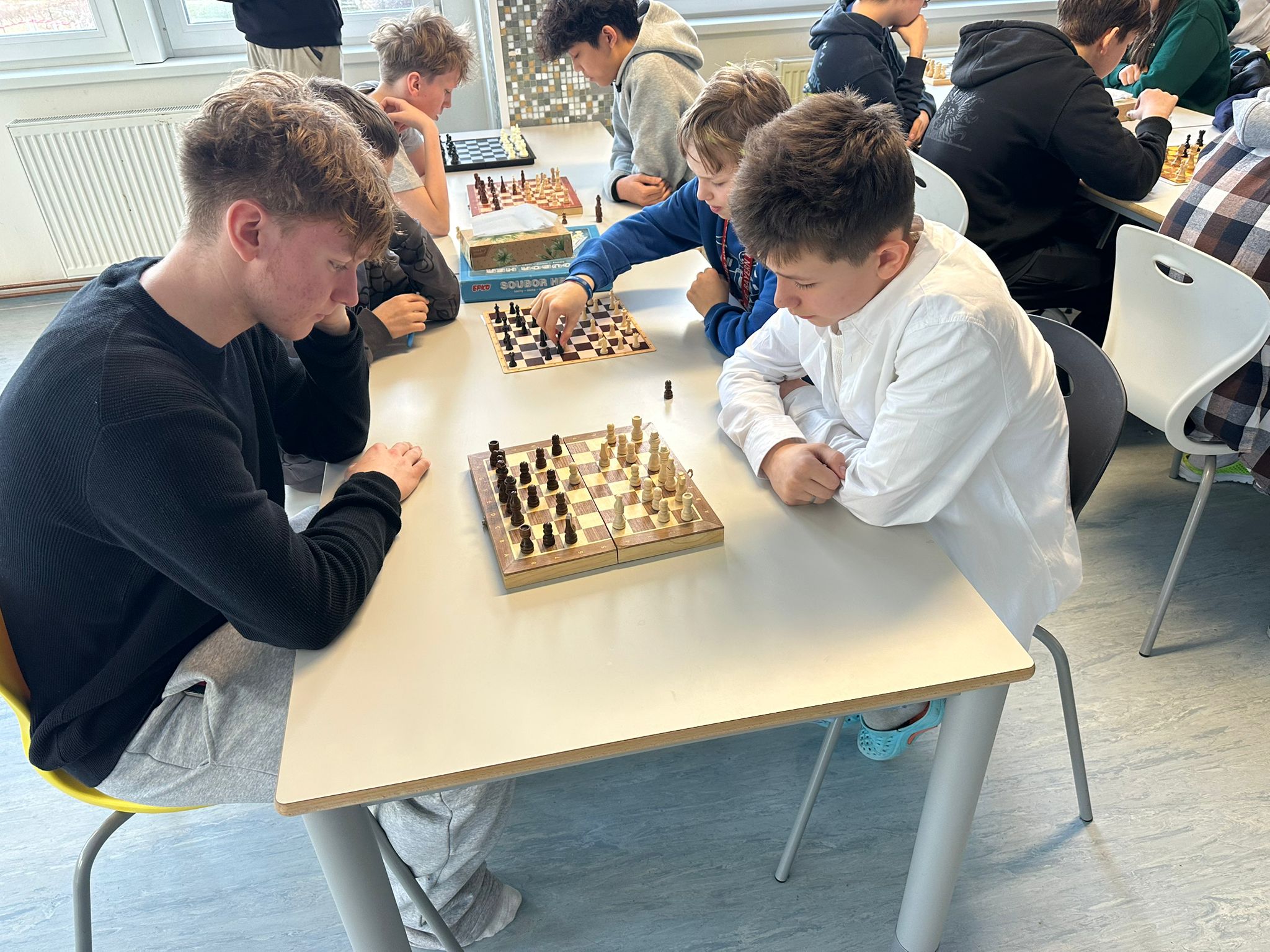 Všechny třídy navštíví zástupci ŽP s prosbou o zapůjčení šachovnic, označených jménem vlastníka, prosíme, pomozte s motivací – hráčů je hodně, šachovnic málo.